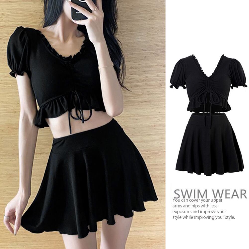 レースアップ水着2点セット 大人ガーリー セパレート水着 パンツ付きミニスカート 露出控えめビーチウェア 夏 海 海水浴