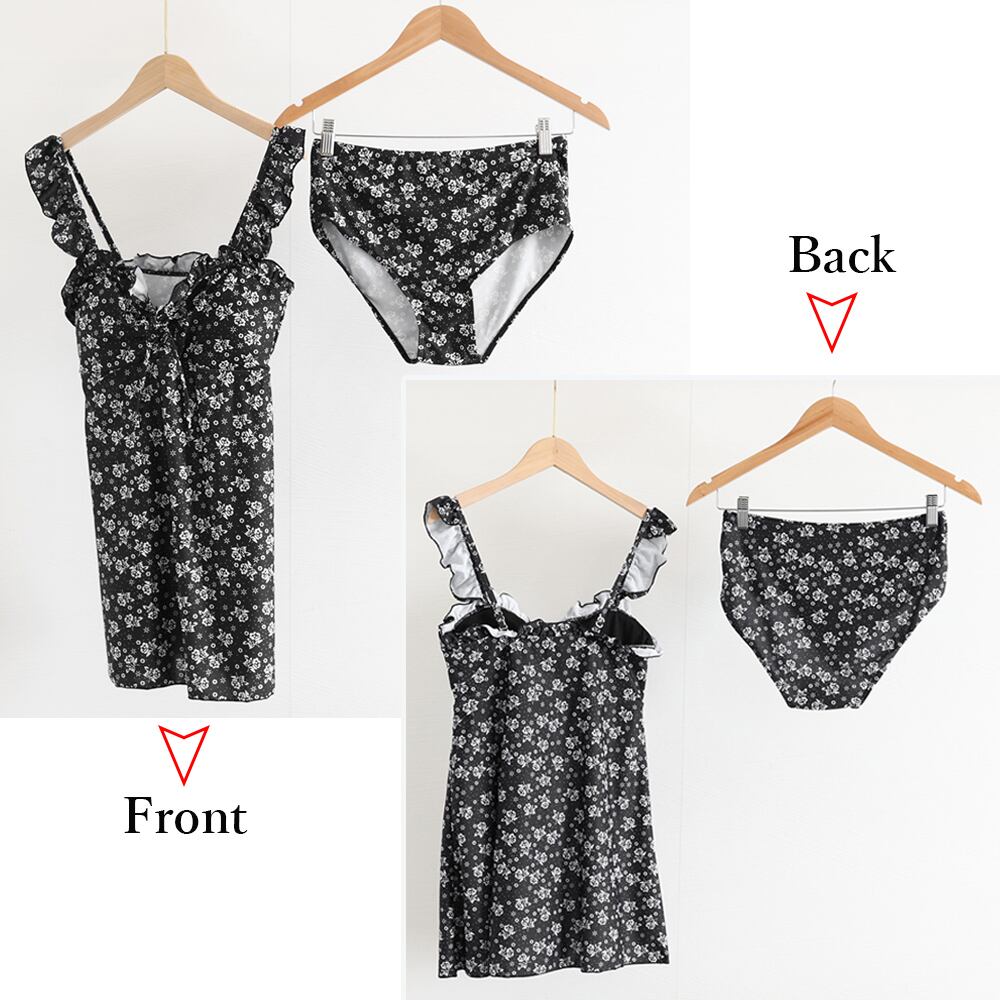 レディース 総柄水着セット 露出控えめオトナ女子 おしゃれスイムウェア 体型カバー リゾートプール ガーリーフリル水着海
