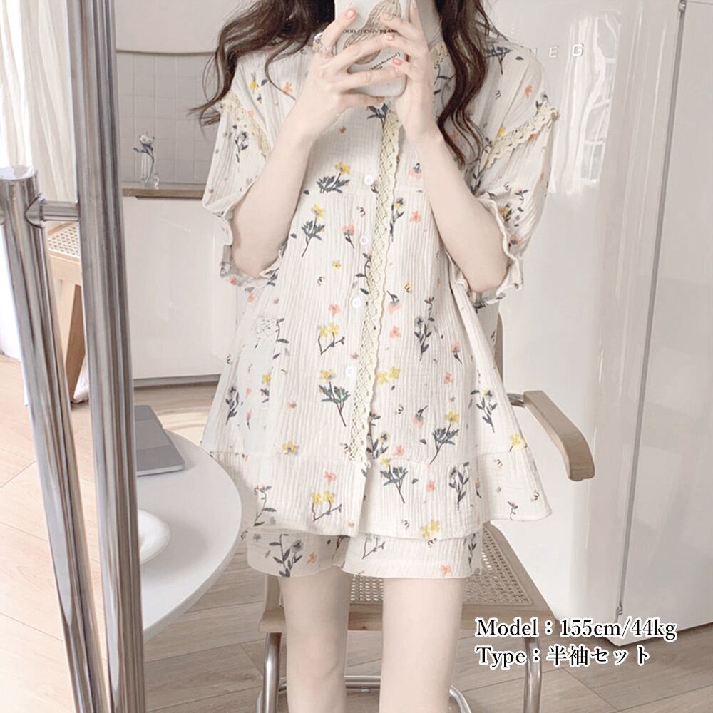 夏服 可愛いパジャマ 半袖 レディース ショートパンツ 長袖トップス ロングパンツ ロングガウン ナイトウエア 3タイプ