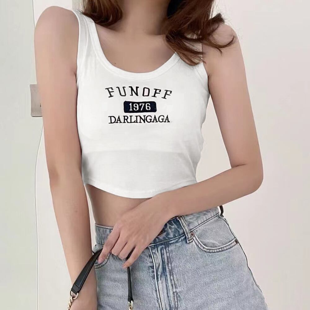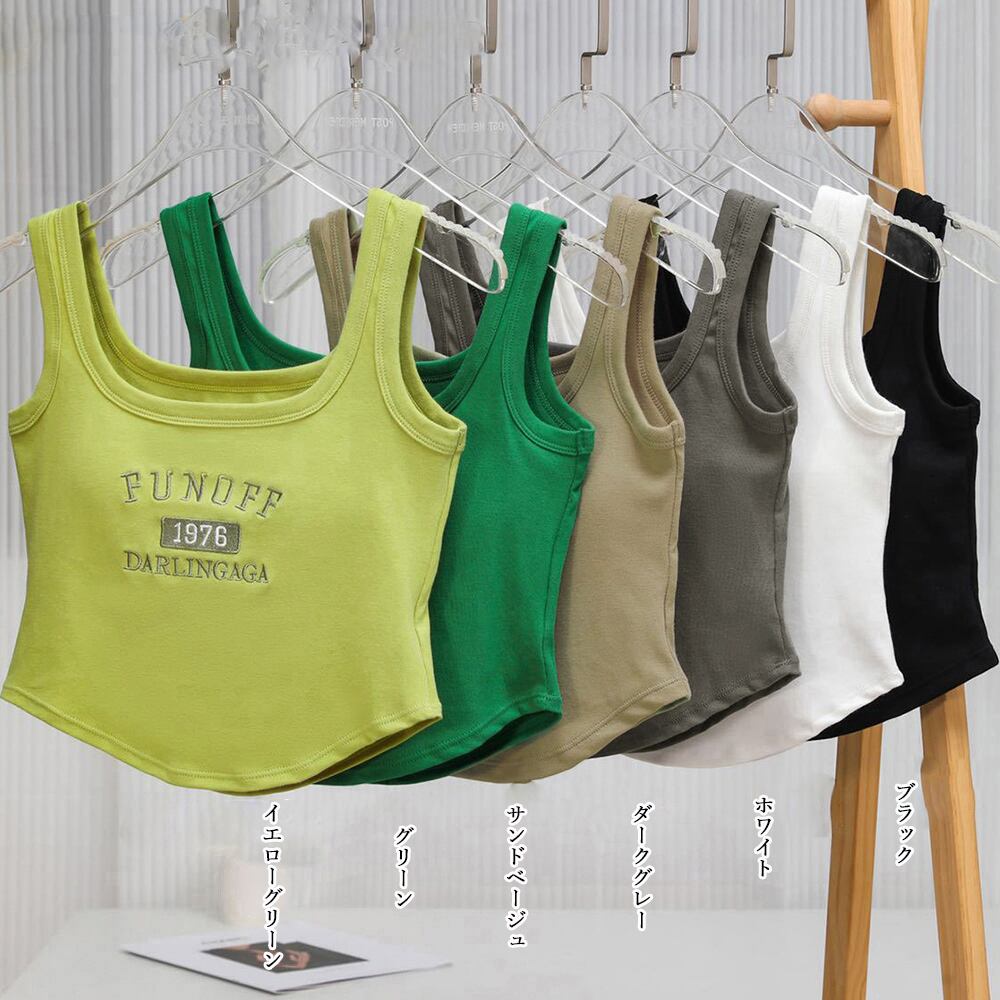 英字プリント 短丈タンクトップ 韓国ファッション ストリート ショート丈トップス ラウンドヘム ちびタンクトップセクシー