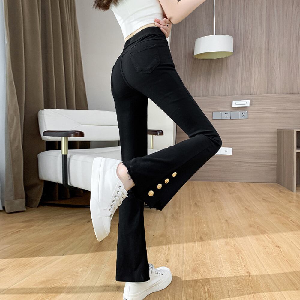 レディース フレアパンツ 切りっぱなし ストリート 着やせ ジーパン ゴールドボタン 美脚 ロングパンツ おしゃれ