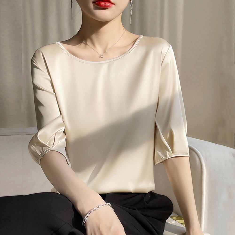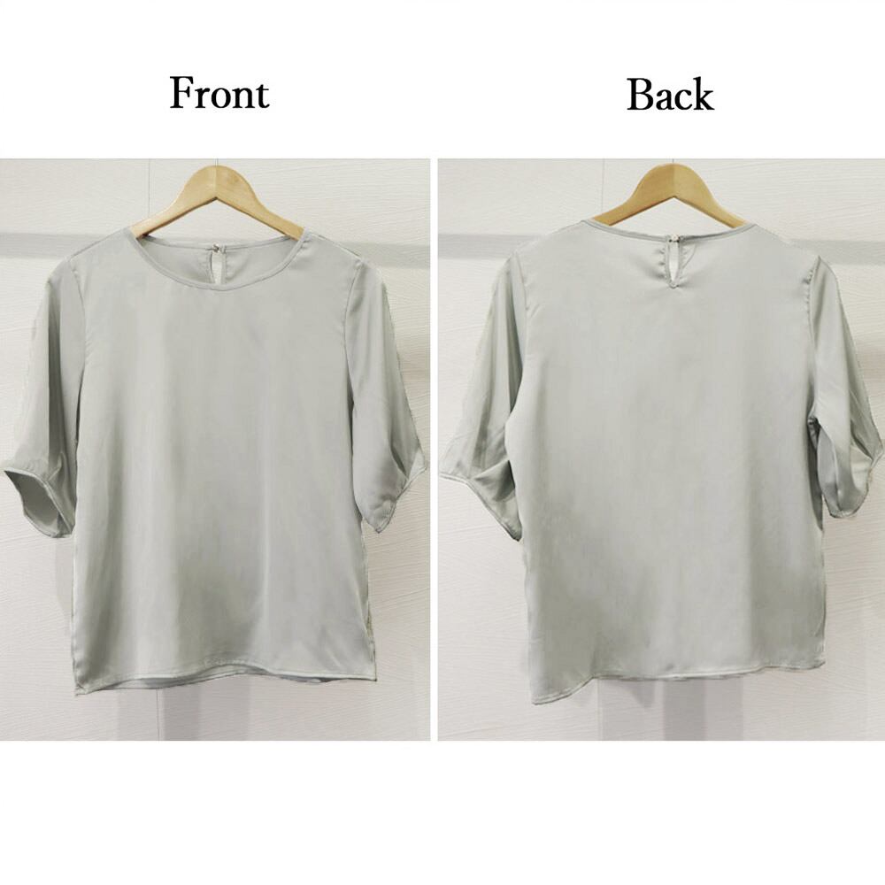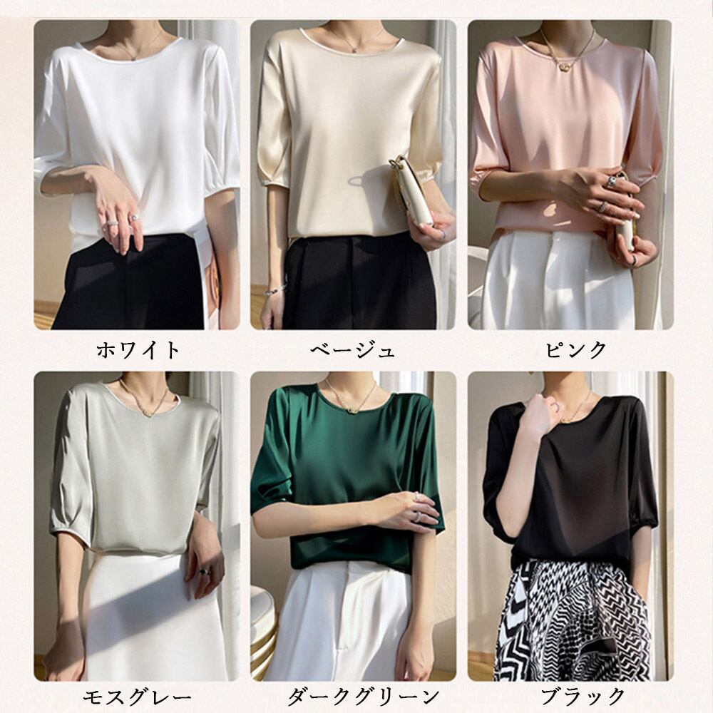 無地 きれいめ 五分袖 薄手シャツ 大人 女性 オフィス カジュアル ゆったり おしゃれ  着やせ 韓国ファッション