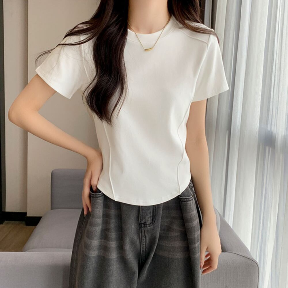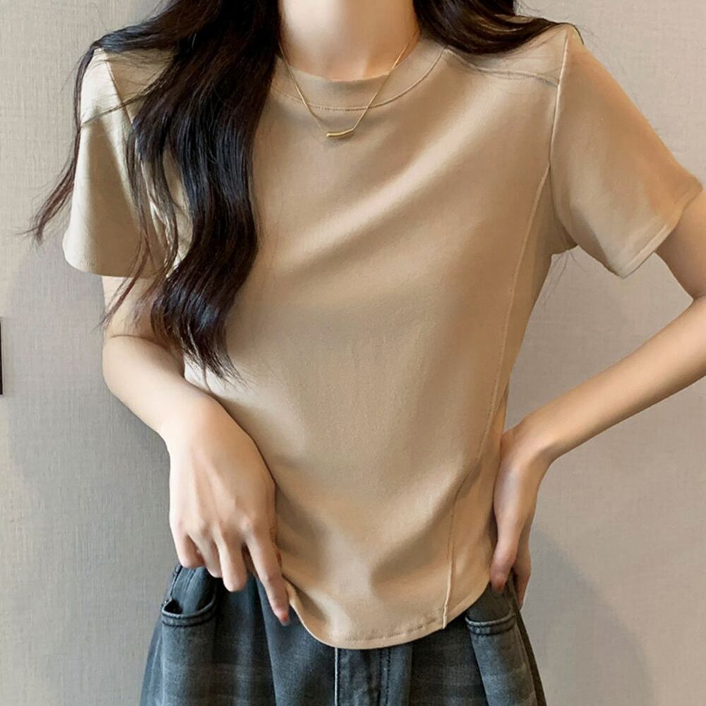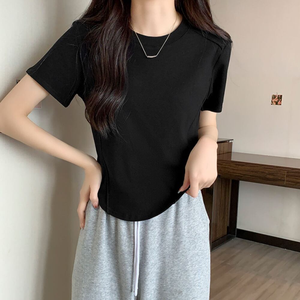 サマートップス春秋 丸首Tシャツ細見え プルオーバー着回し