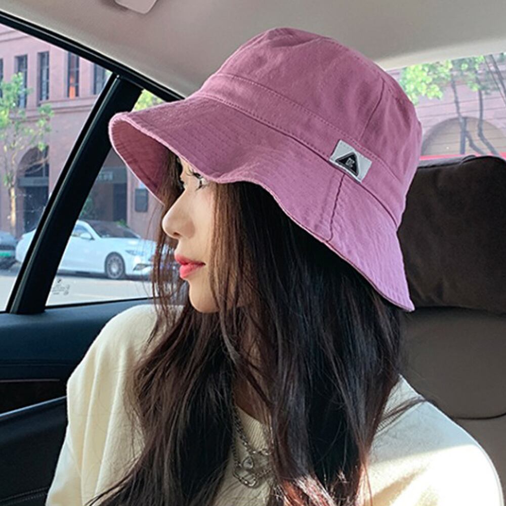 外側に英字ロゴのタグが付いたバケットハットの登場。