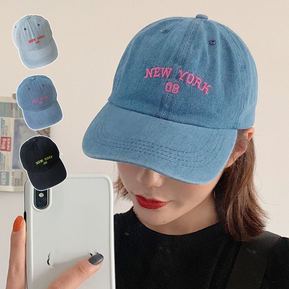キャップ 英字ロゴ刺しゅう デニム帽子