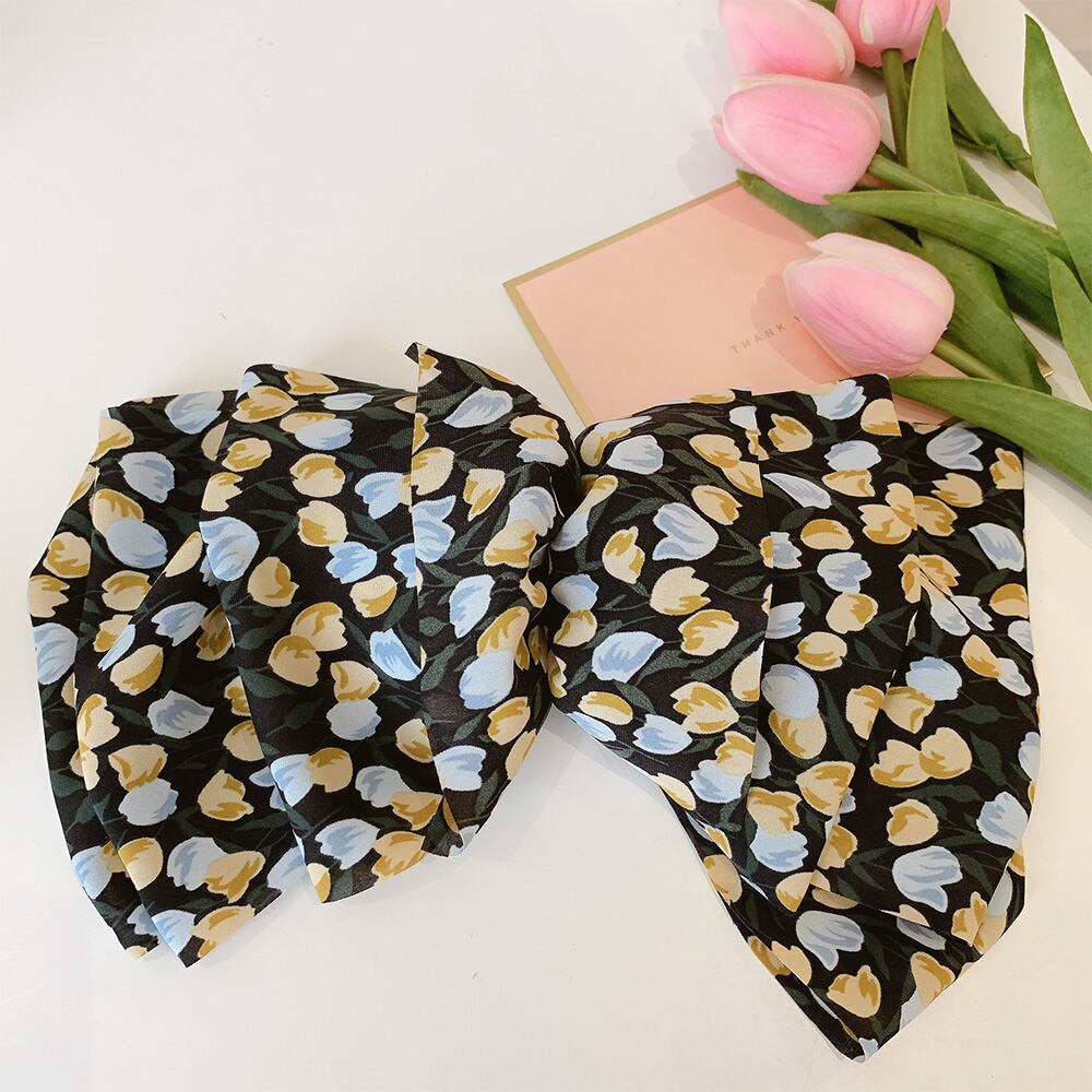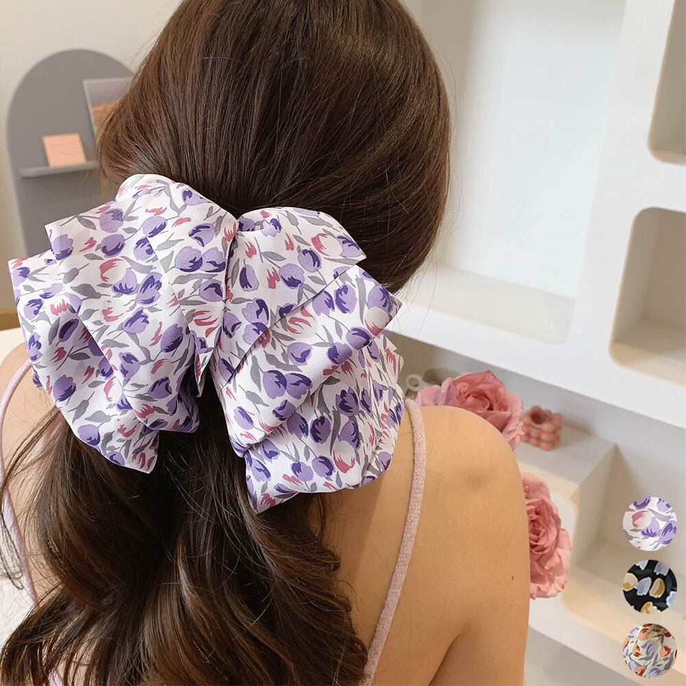花柄バレッタ 大きめリボン 髪飾り 蝶々結び 大人可愛い まとめ髪 オフィスカジュアル女子会 おしゃれ 髪留め 流行り