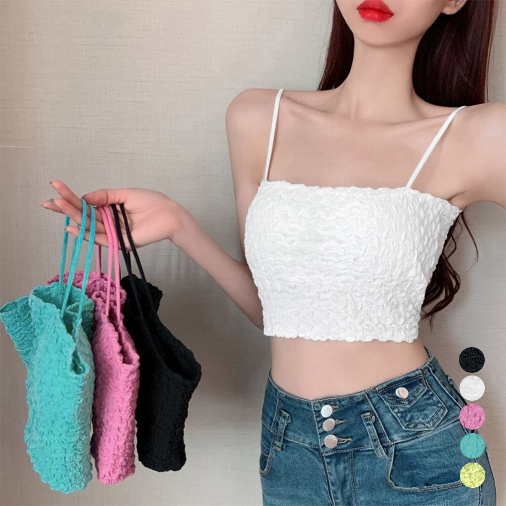 インナーキャミ夏服 ショート丈トップス 韓国ファッション白