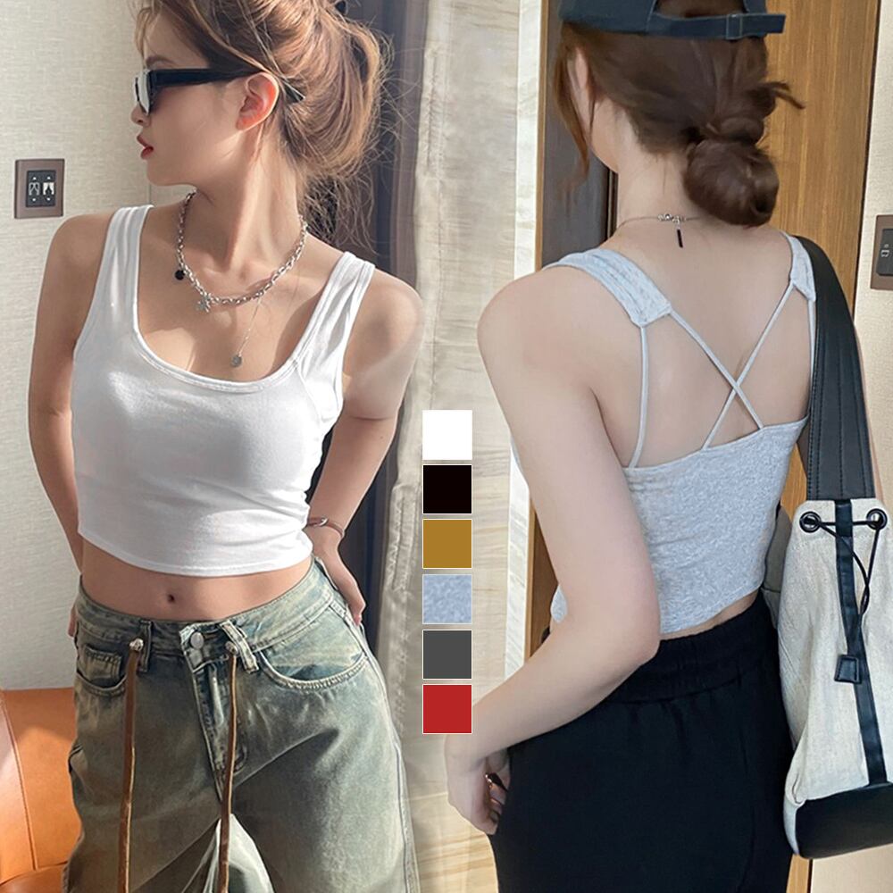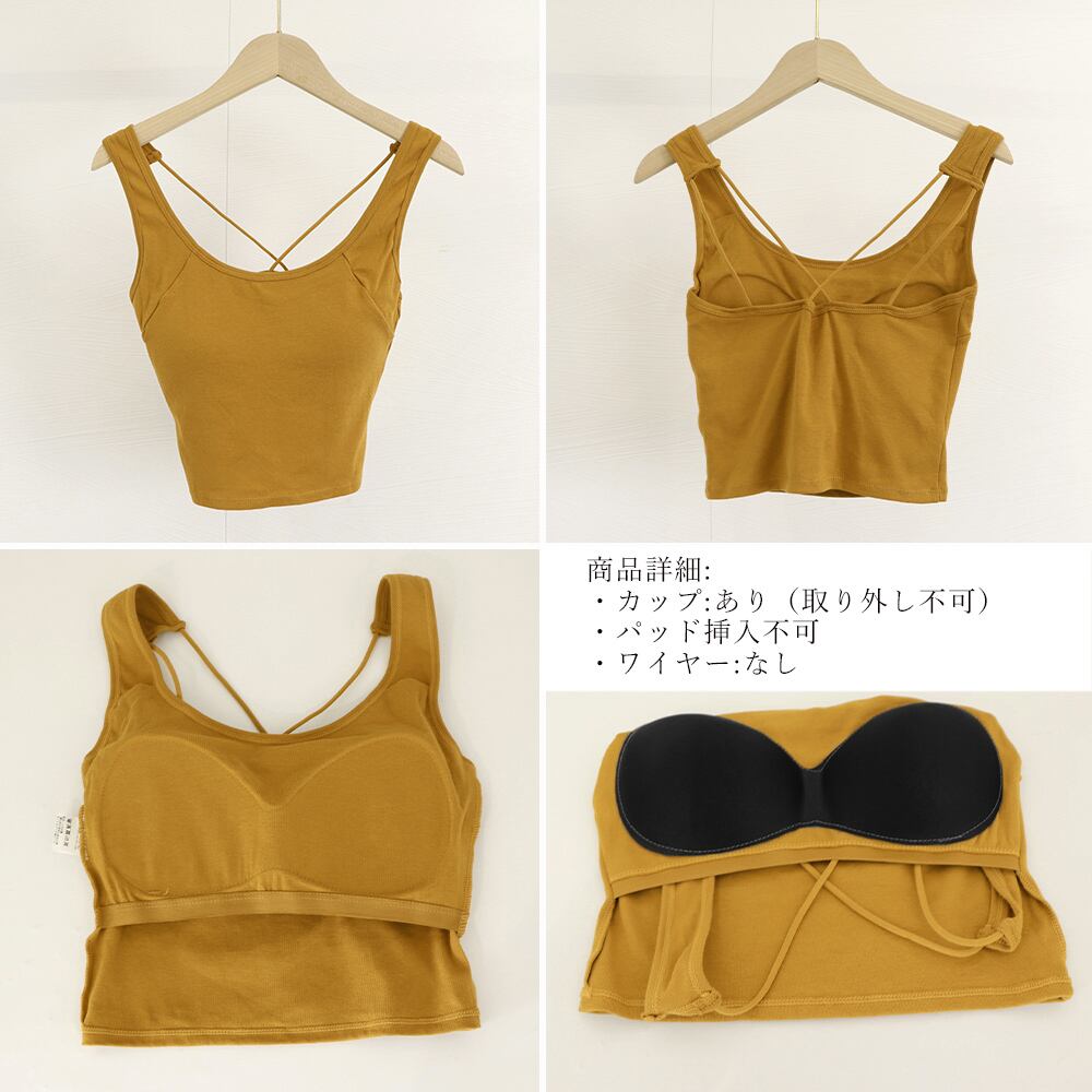 カップ付き バッククロスタンクトップ無地