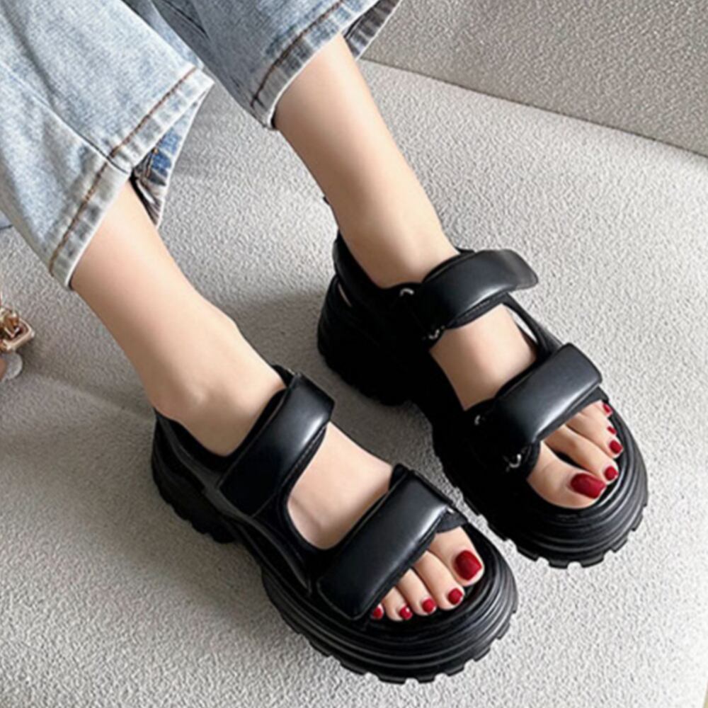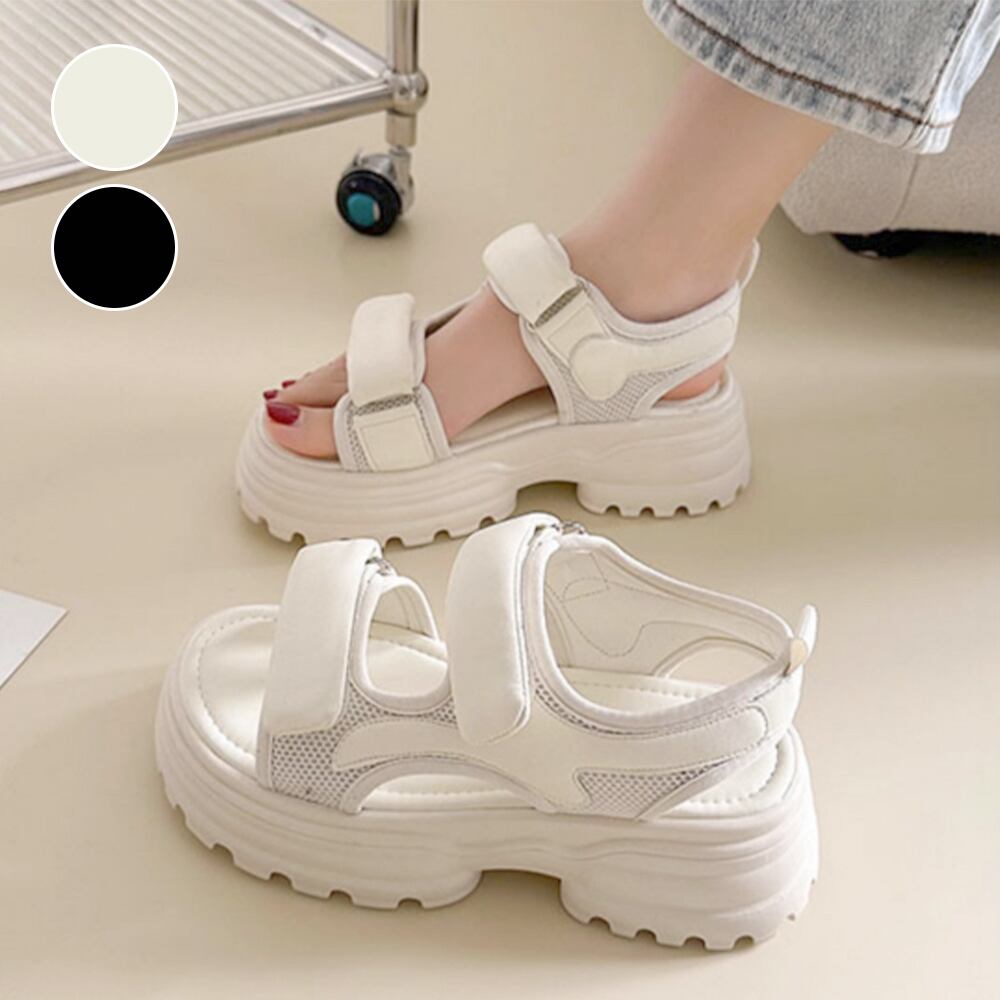 レディース 韓国 ベルクロ スポサン 走れる ベルトサンダル 5cmヒール 歩きやすい おしゃれ アウトドア 旅行 靴