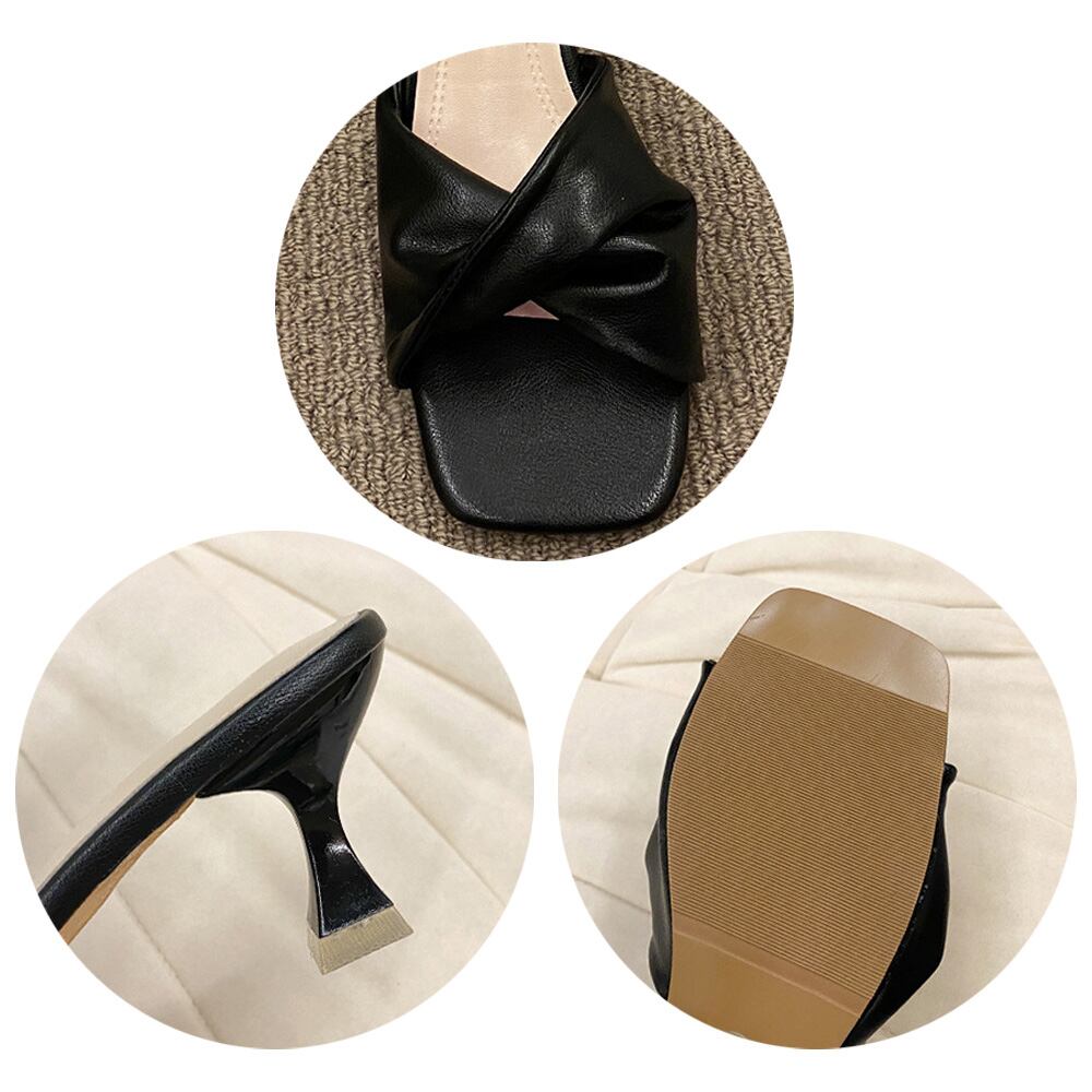 ねじりデザイン、シルエットがきれいなヒールミュールサンダル!