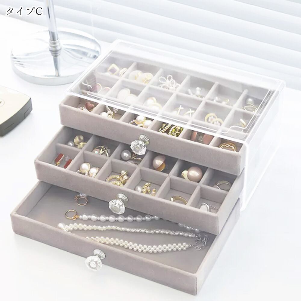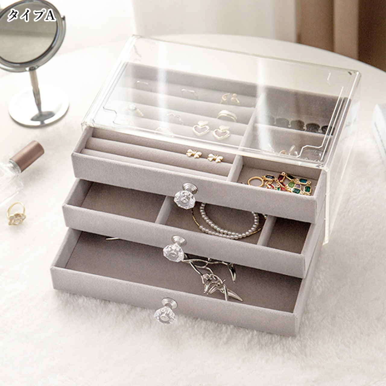 お手持ちのジュエリーやアクセサリーなどの小物を一括管理できる3段引き出しジュエリー収納ボックスです
