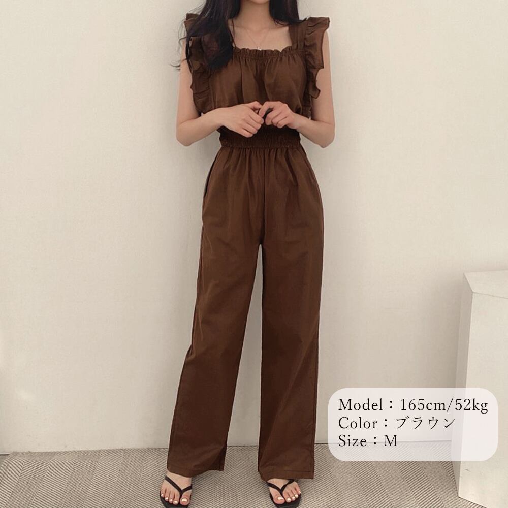 フリル袖 オールインワン パンツドレス
