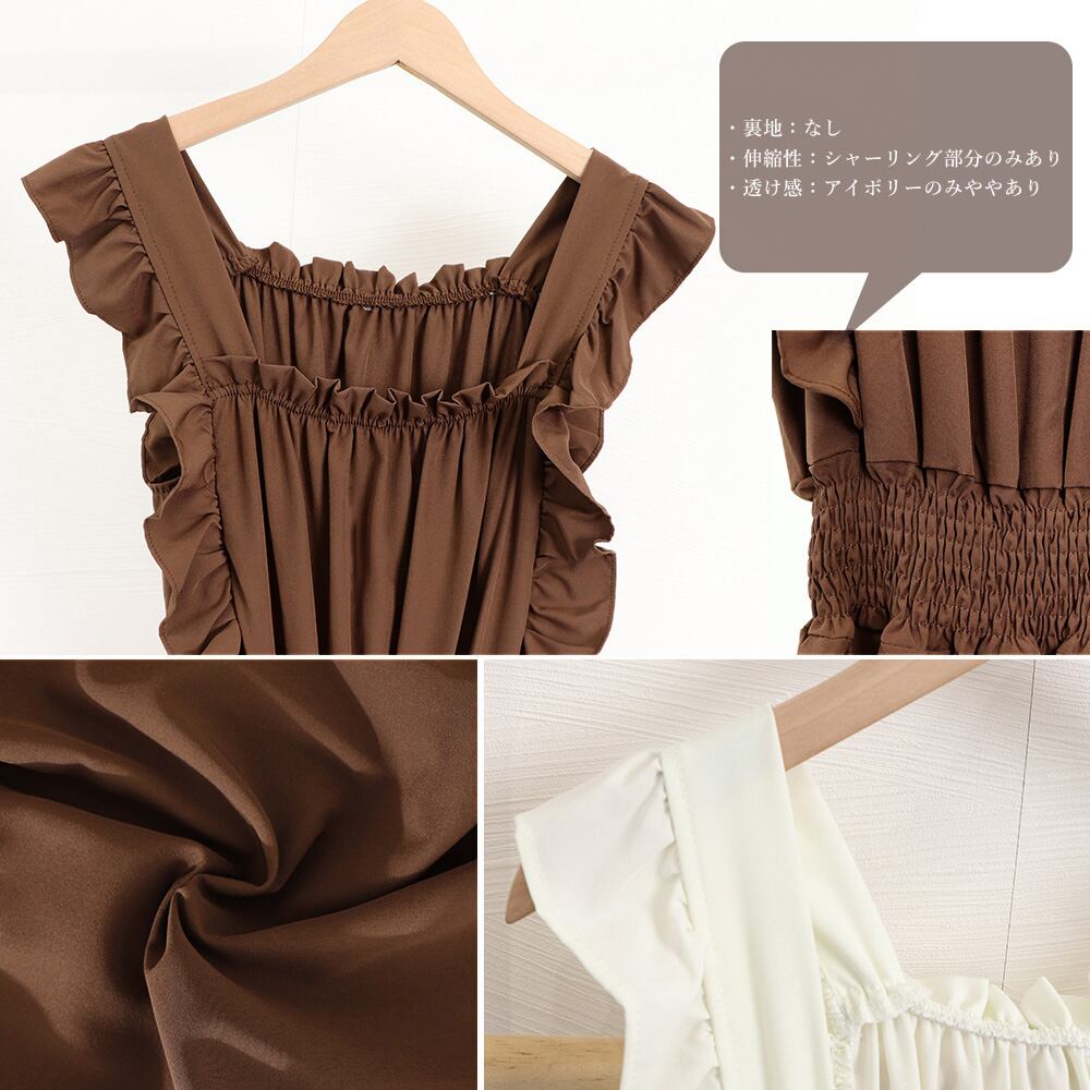 華やかなフリル袖が女性らしさを引き立て、スクエアネックがシックな印象を演出します
