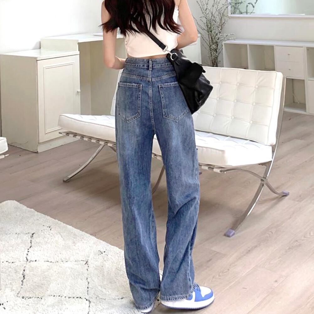 ワイドデニムレトロ ストレート デニム デニムボトムス韓国