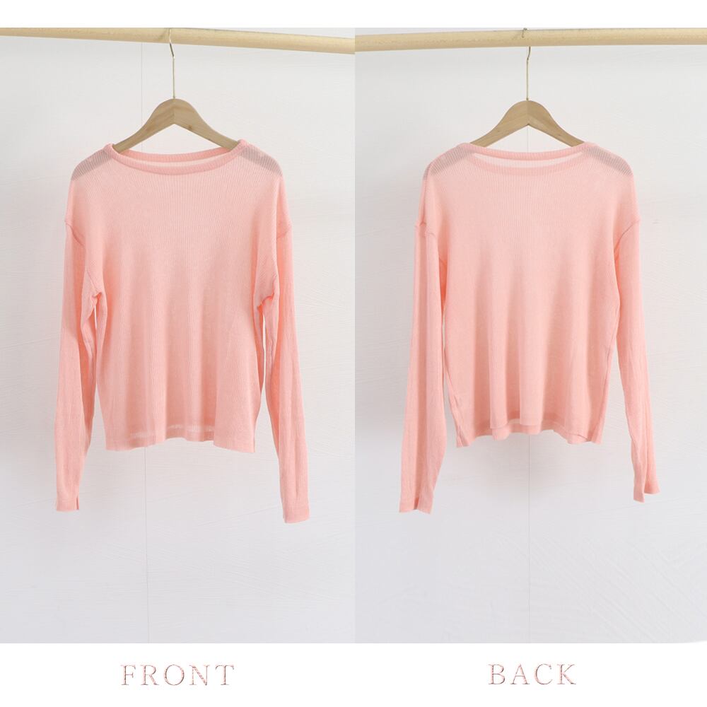 薄手 プルオーバー ゆったり シースルートップス 冷房対策 透け感 丸首カットソー 韓国 UV対策 ニットTシャツ 無地