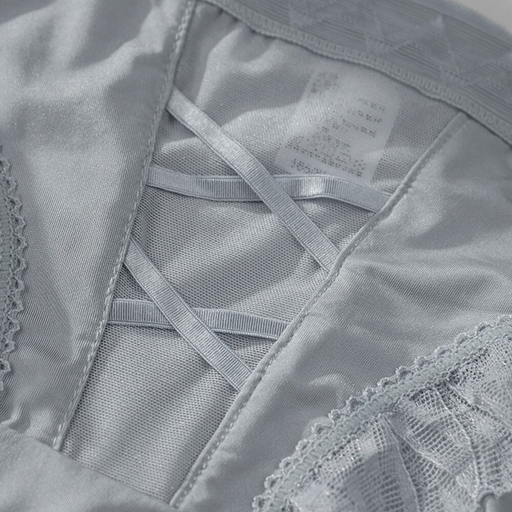 ウエストと脚口にあしらわれたレースは体に程よくフィット、敏感肌でも痒くなりにくく締め付け感もなくて快適