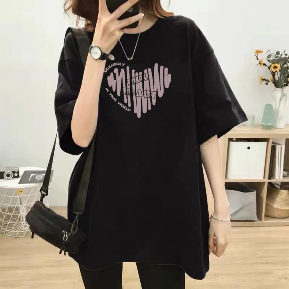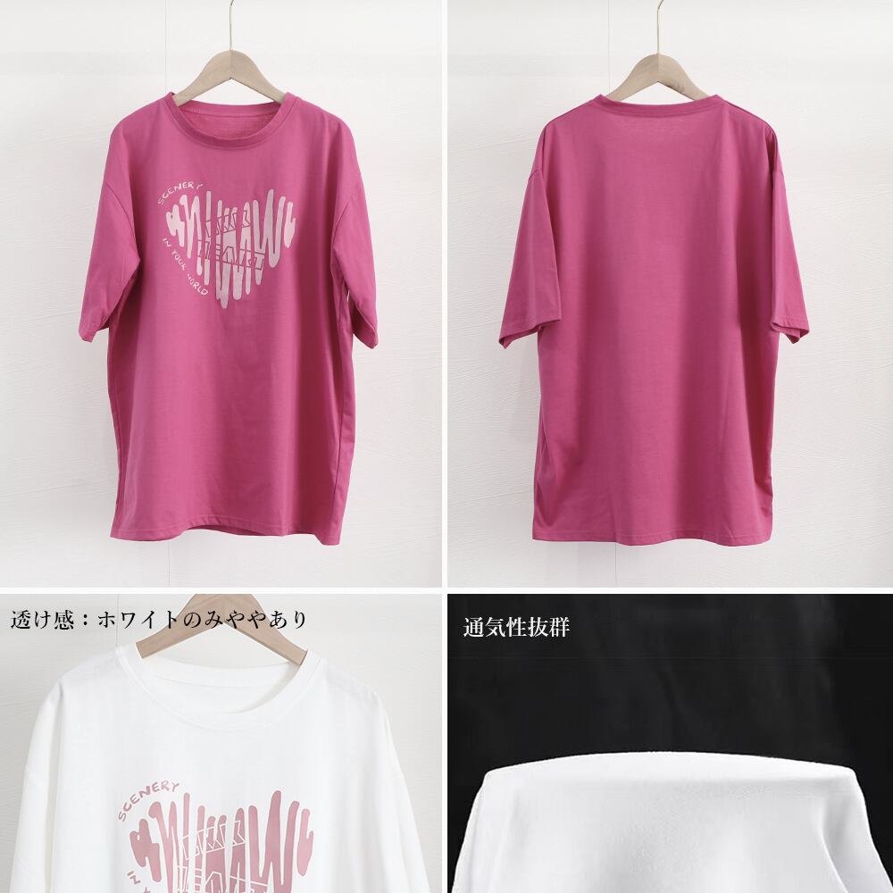 クルーネック tシャツ 半袖 ゆったり プルオーバー 夏トップス 体型カバー 配色ビッグTシャツ ハート ロゴプリント