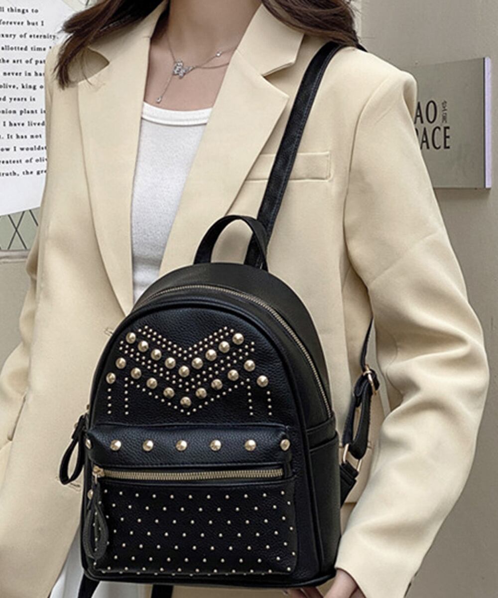 スタッズがアクセントになるレディースフェイクレザーリュック