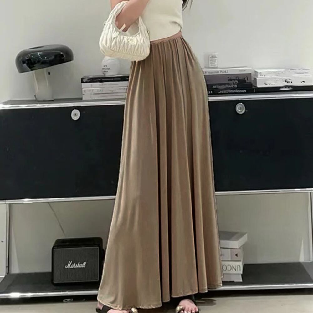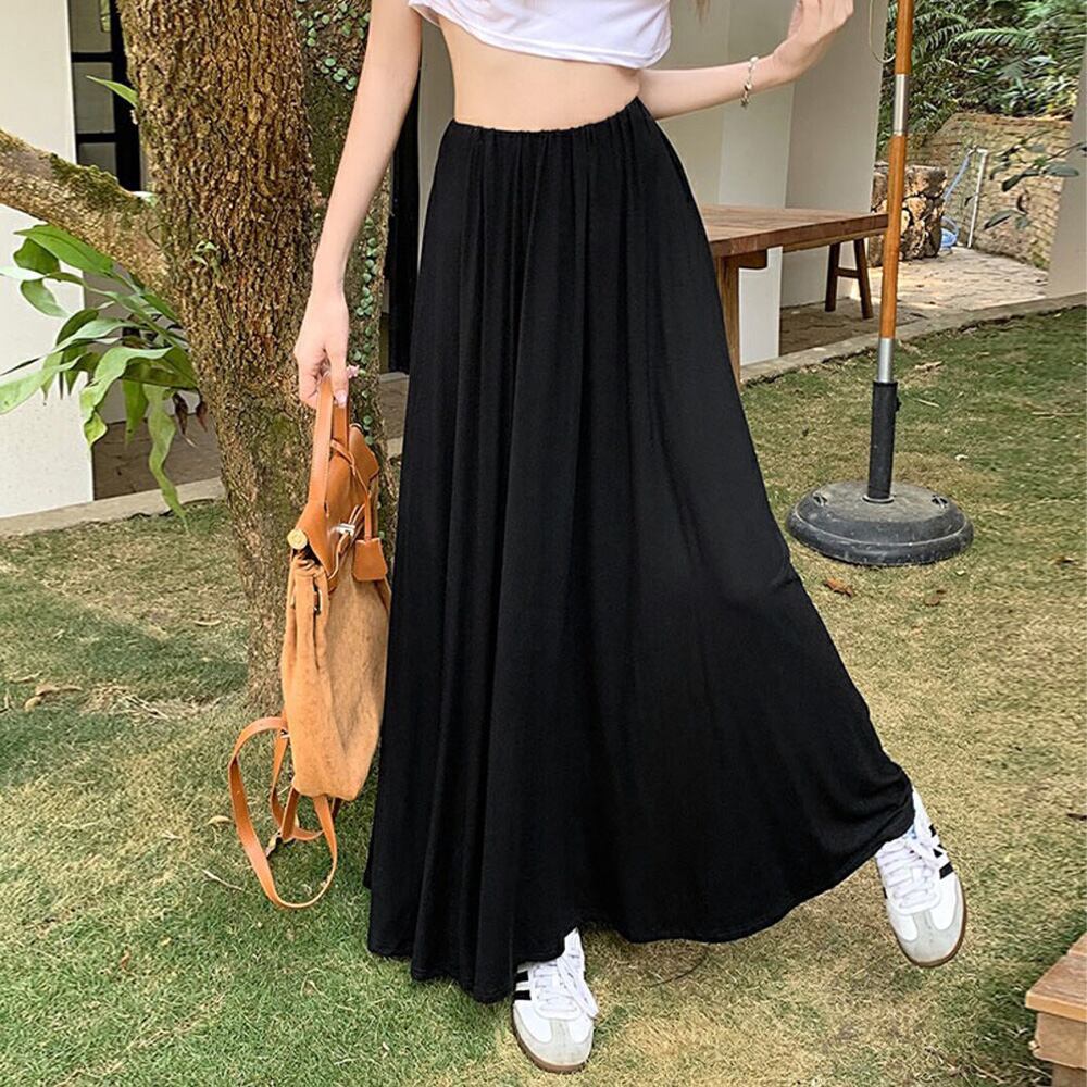 韓国 低身長 マキシスカート きれいめ フレアスカート オフィスカジュアル aラインスカート 大人体型カバー 楽ちん夏服