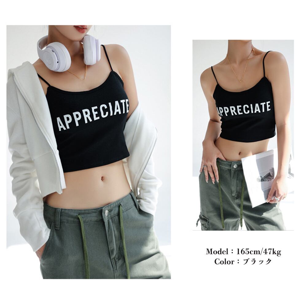 カップ付き キャミソール 英字ロゴ 韓国