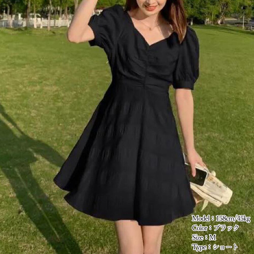 おしゃれ サマーワンピ パフスリーブ ロングワンピース バックシャン ミニワンピ 可愛い フレアワンピース バッククロス