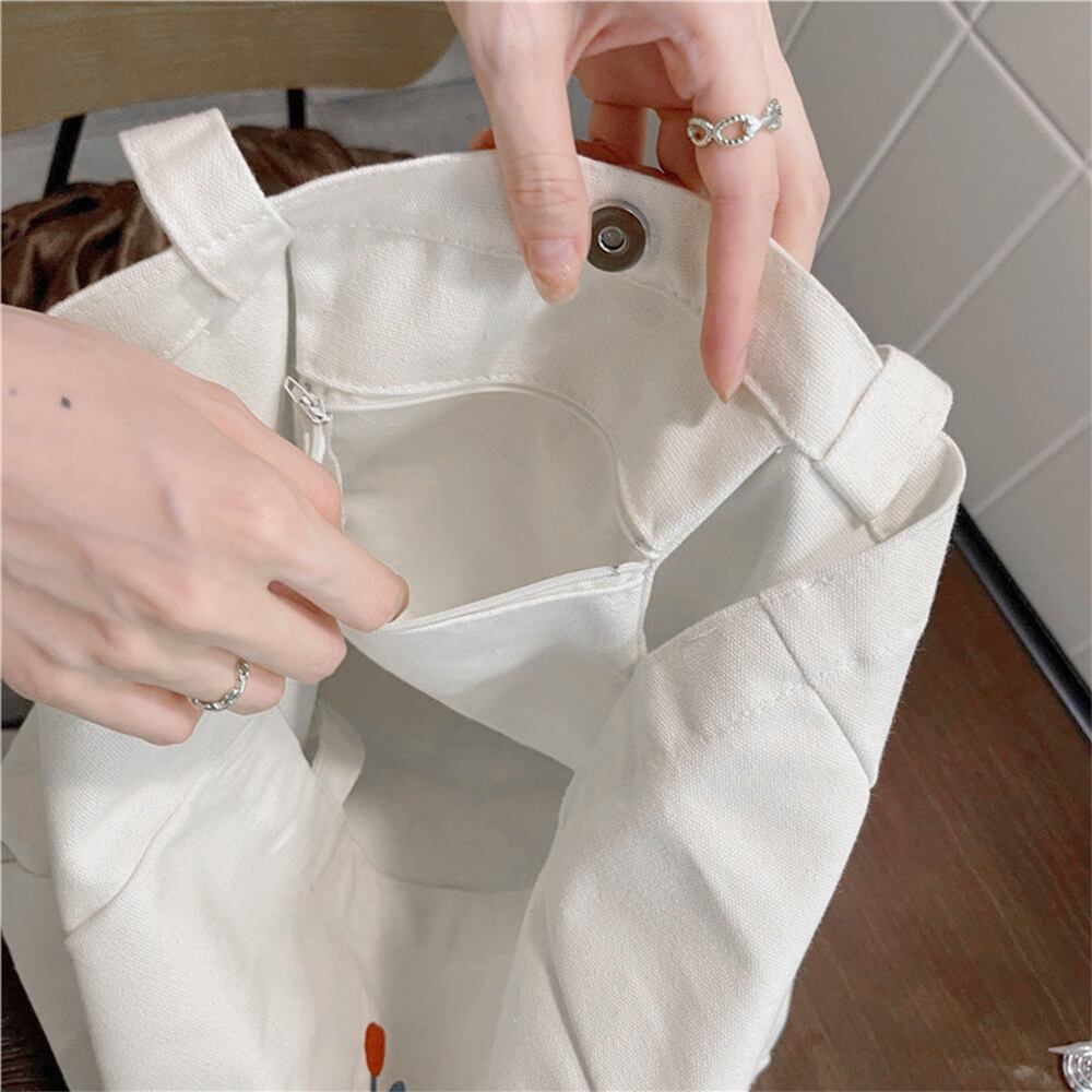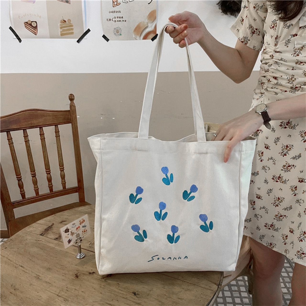 帆布かばん 手提げ 花柄刺しゅうバッグ お出かけかばん配色