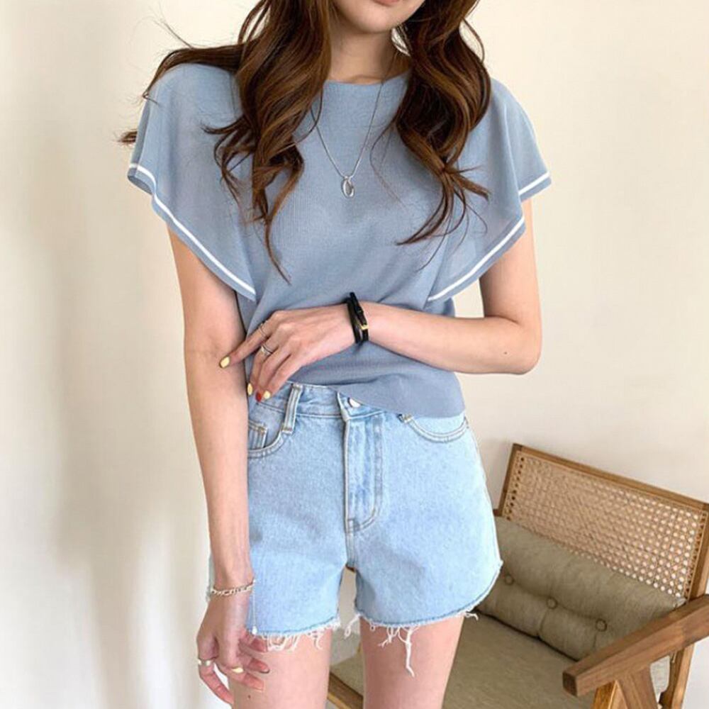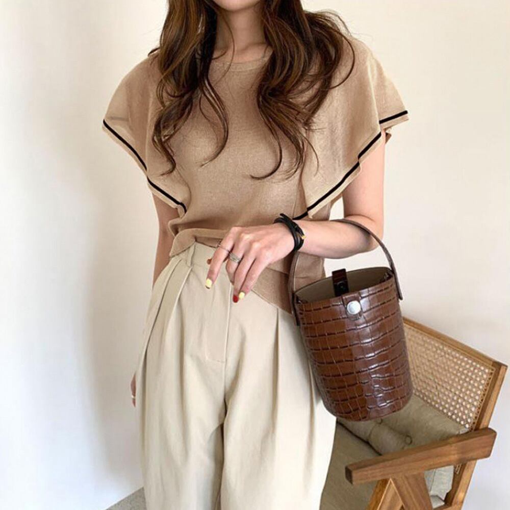 薄手ニット 春 夏 フェミニントップス 細見えトップス無地