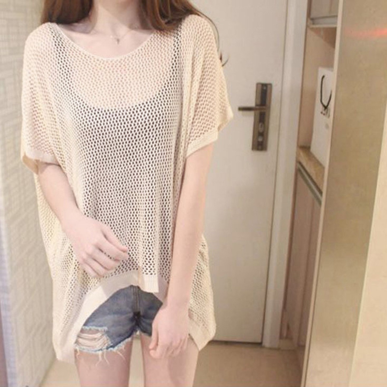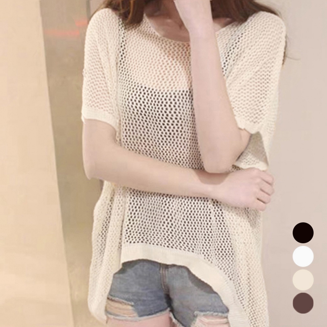 メッシュトップス ドルマンスリーブ韓国風