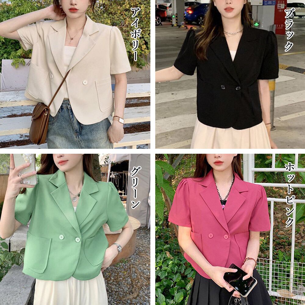 ショート丈 テーラードジャケット Vネック 短丈春夏アウター 襟付き軽アウター 韓国おしゃれ夏羽織り サマージャケット黒