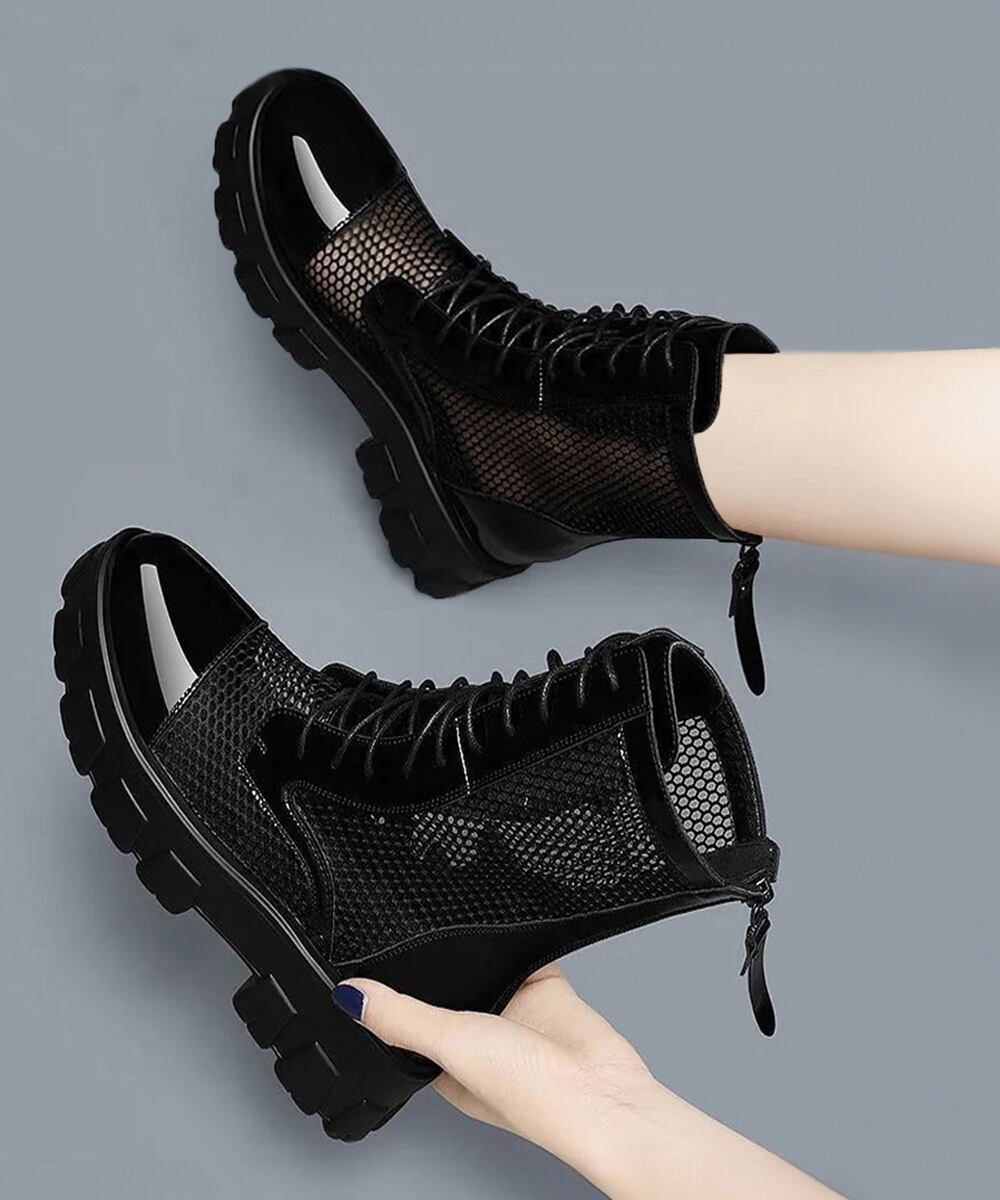 美脚 ショートブーツ 歩きやすい シアーブーツ 蒸れない サマーブーツ 痛くない レースアップシューズ バックファスナー