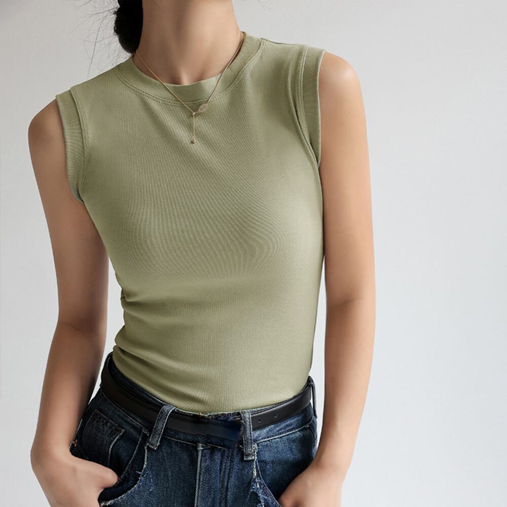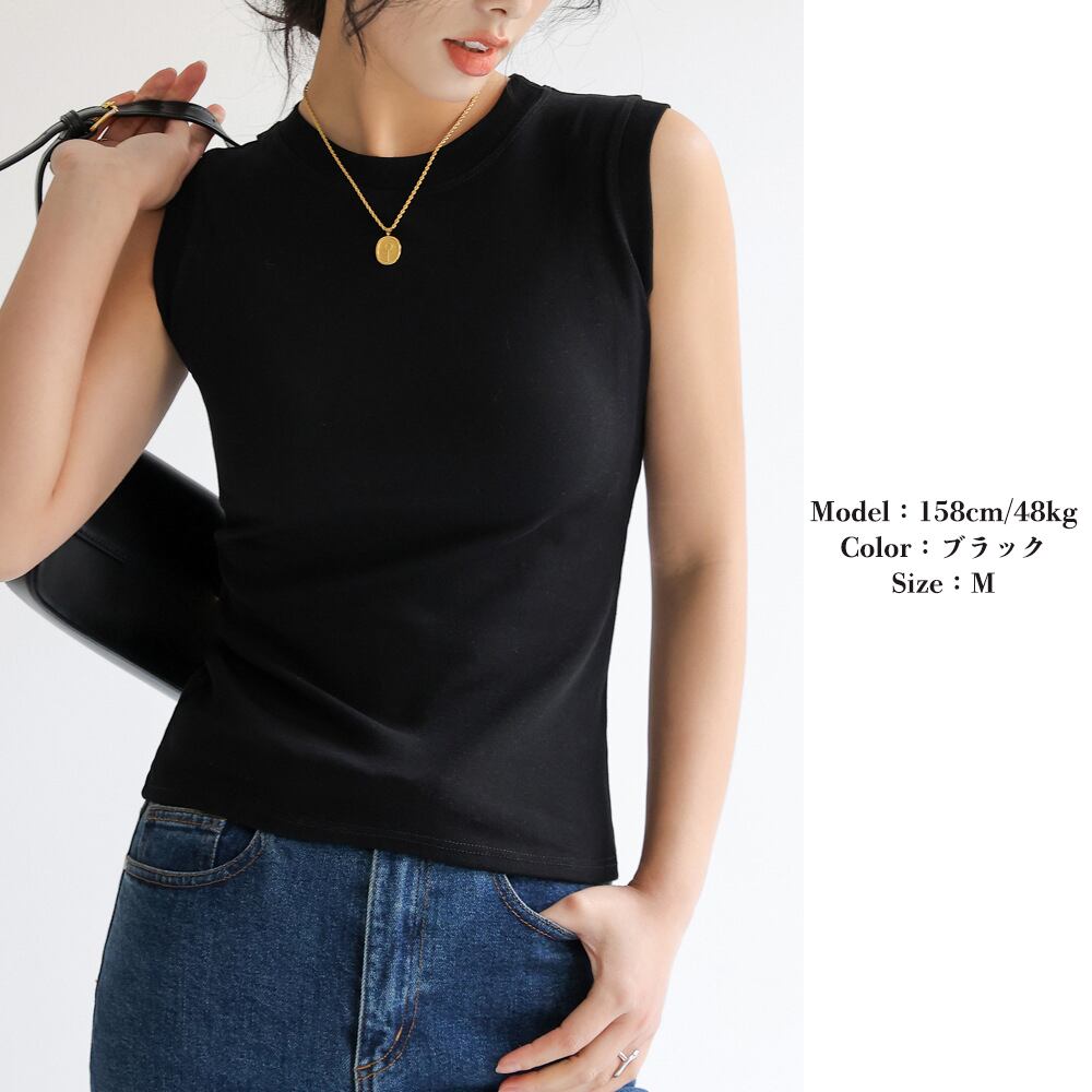 ストレッチ性に優れた生地で1日中快適な着心地のノースリーブトップス。