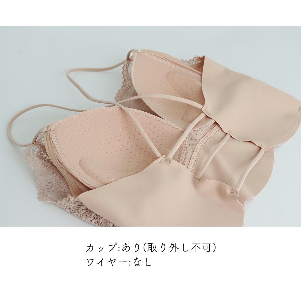 カップ:あり(取り外し不可)ワイヤー:なし裏地:なし