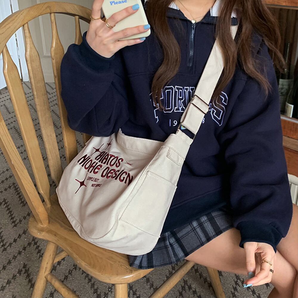 レディース ロゴ入り 韓国風 肩掛けカバン 斜め掛け 鞄 通学バッグ ユニセックス A4収納可 マザーズバッグ シンプル