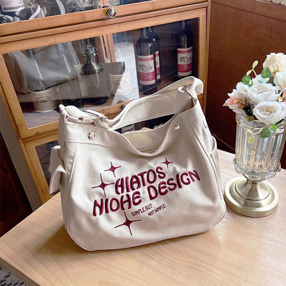 キャンバス素材でしっかりとした大容量のショルダーバッグ