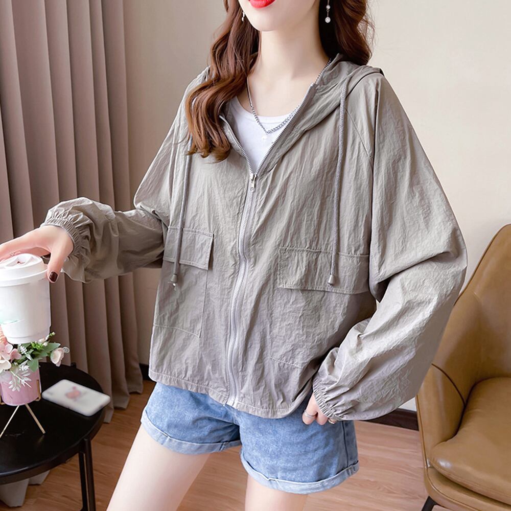 韓国ジップパーカー 長袖 サマーカーディガン おしゃれ フード付き ライトブルゾン 夏トップス 透け感 カジュアル羽織り