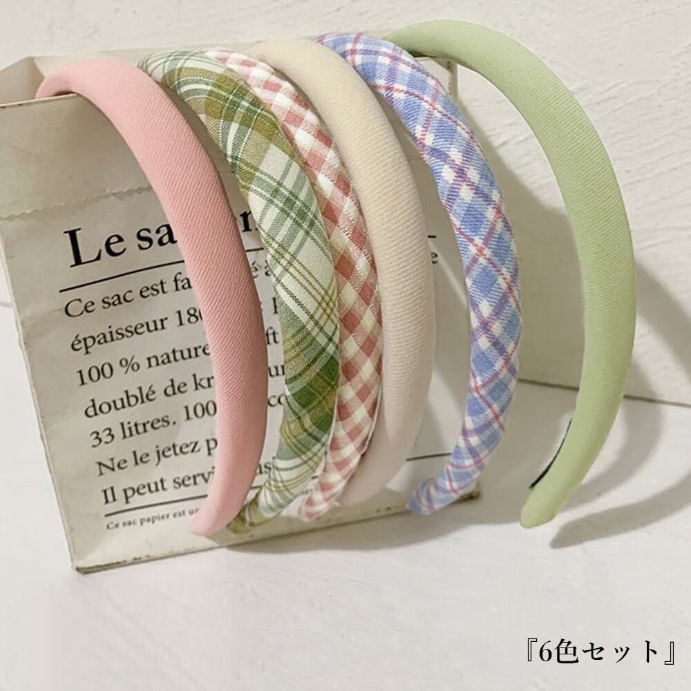 シンプルな単色&定番人気なチェック柄、パステルカラーがトレンディで大人可愛い韓国風カチューシャ6点セットが新作登場