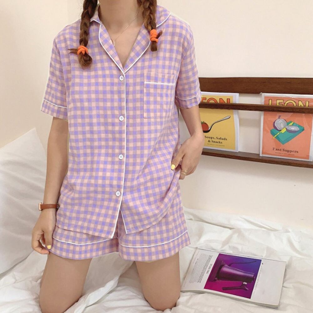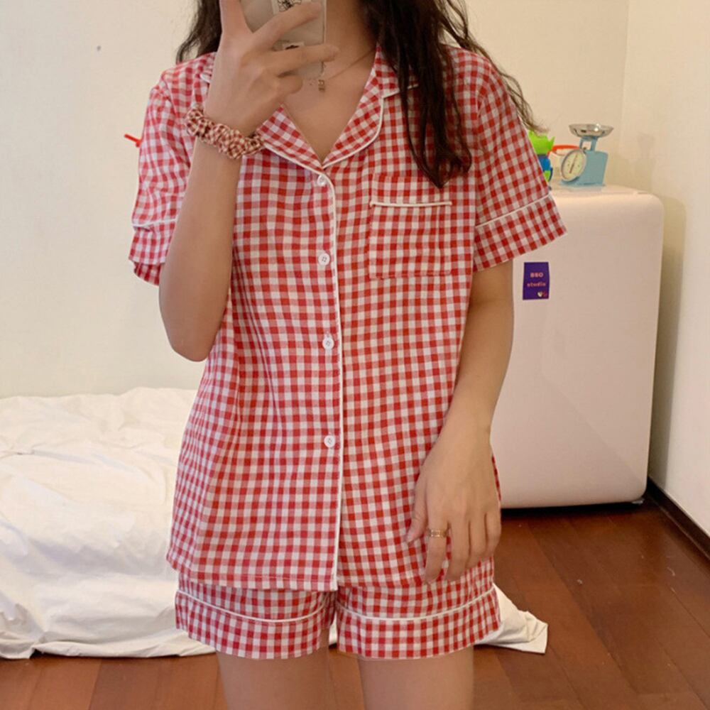 レディース チェック柄 ラウンジウェア 半袖 部屋着セット ショートパンツ ナイトウェア 修学旅行 可愛い お泊り寝巻き