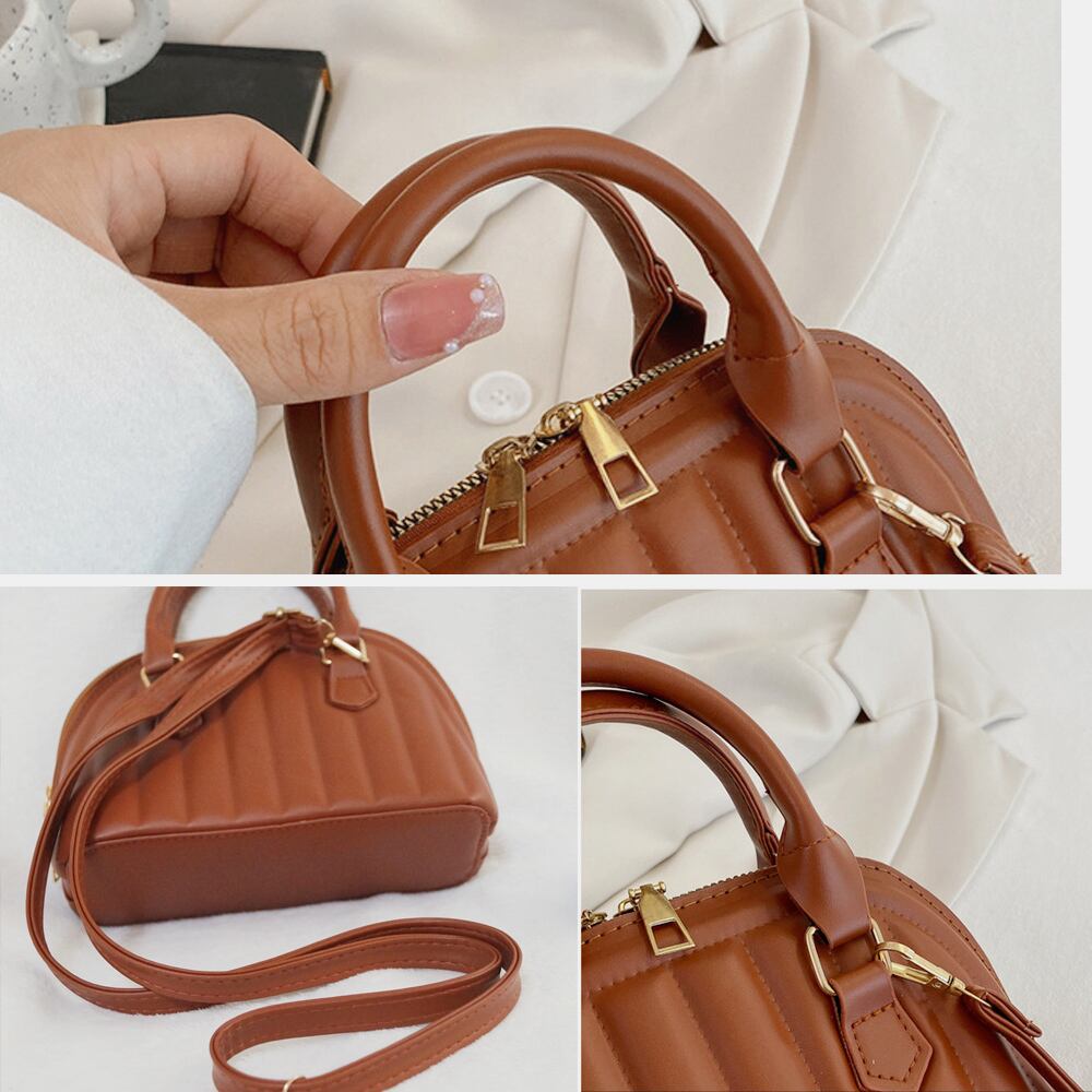 かまぼこ型がレトロな雰囲気をプラスしてくれるPUレザーショルダーバッグです