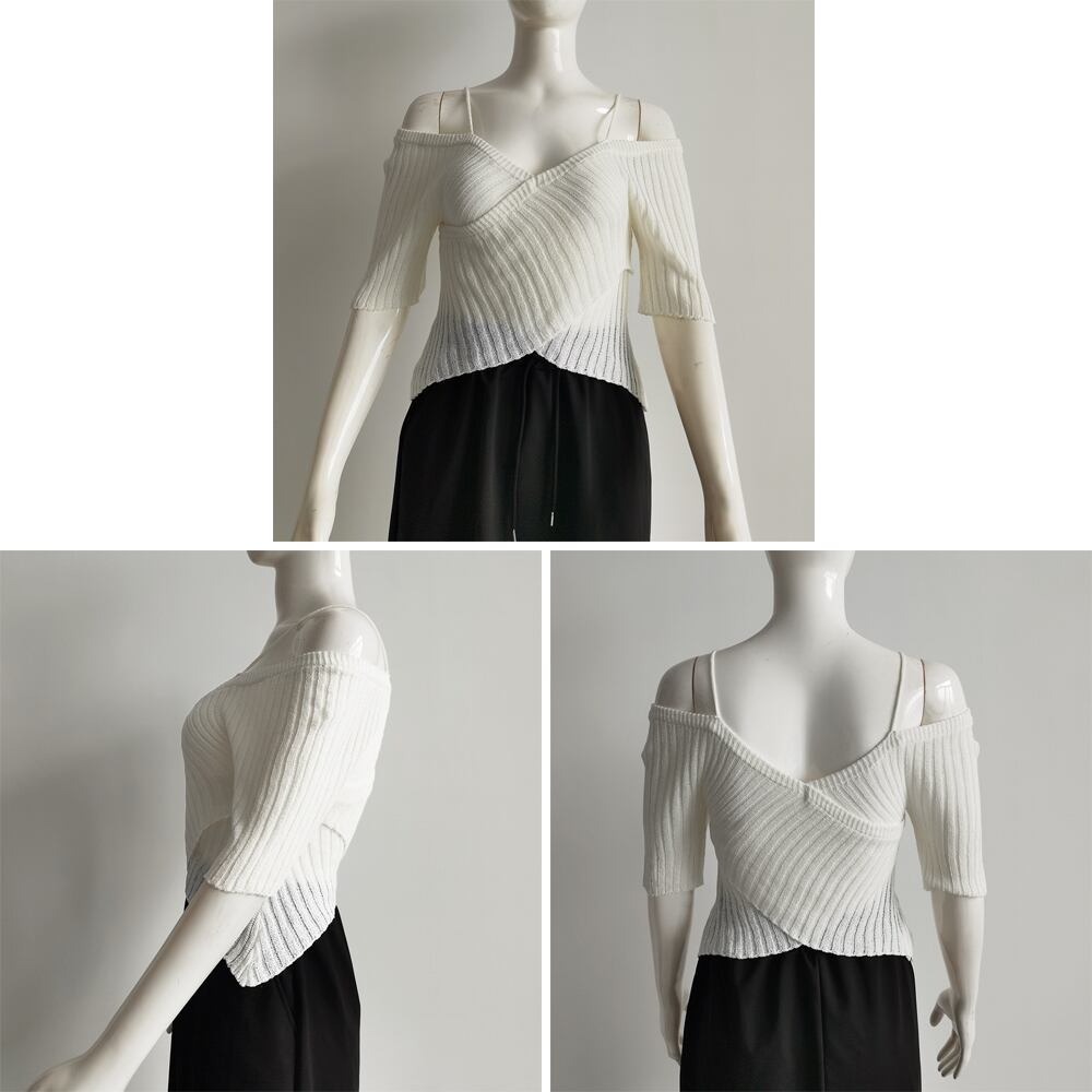 レディース 2wayクロスリブニット Vネック セクシーリブニット 無地 肩だしニット フィット感 ニットインナー 春夏
