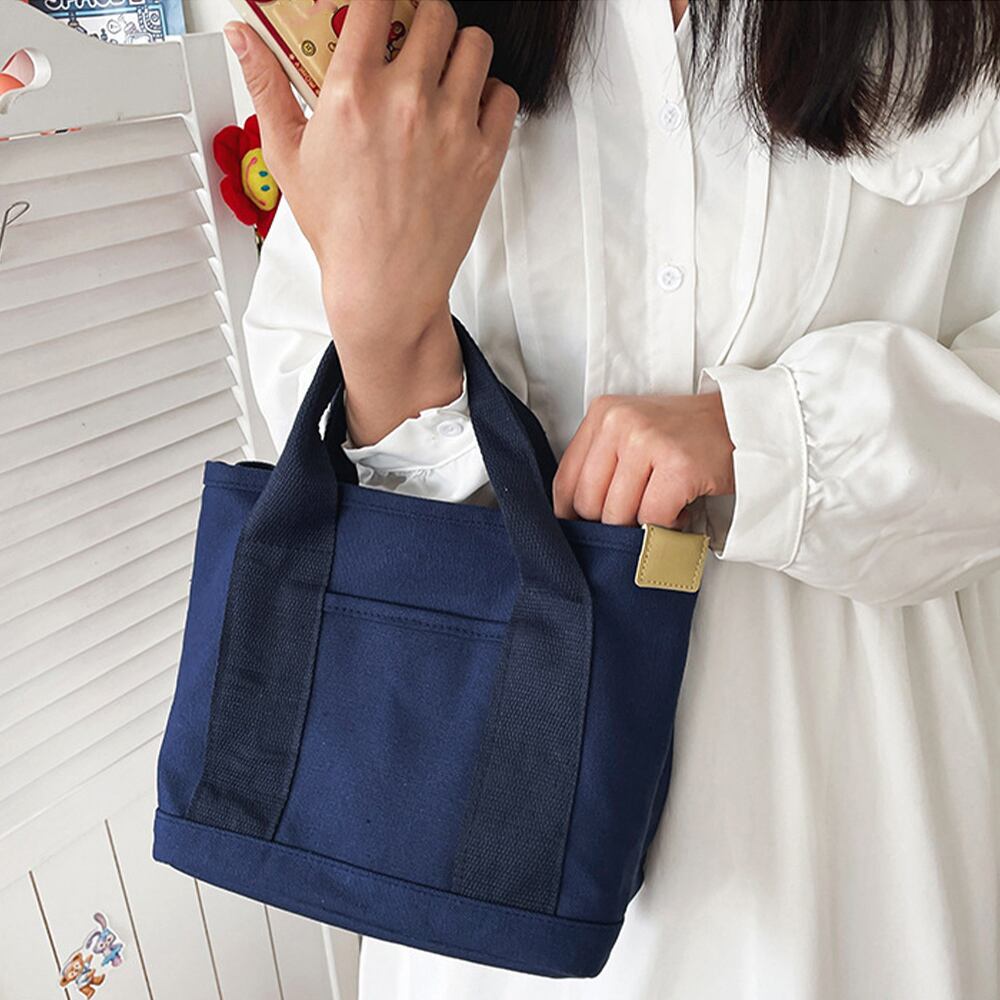 キャンバスバッグレディース 通勤通学 仕切り 底板付きトート 学生ランチバッグ  シンプル無地 男女兼用 韓国カジュアル