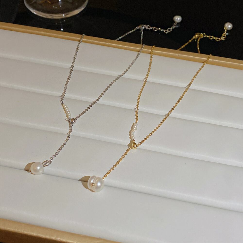 デコルテを上品に引き立ててくれる大人っぽいパールネックレス