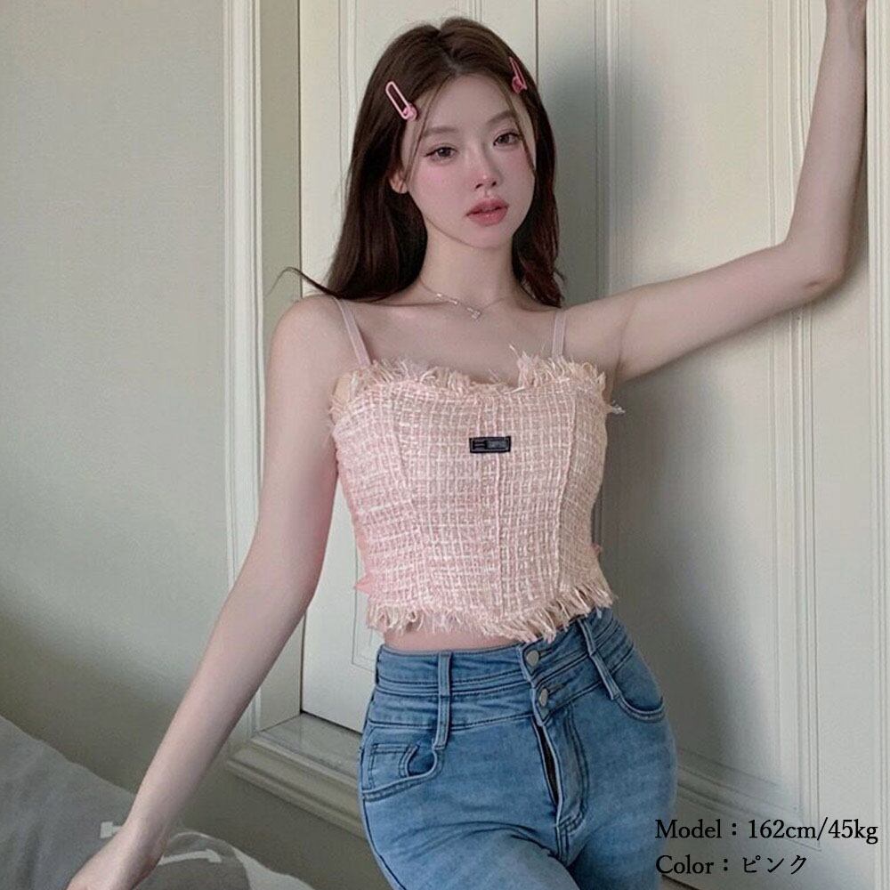 セクシーさと女子力を上げるツイード素材のキャミソール