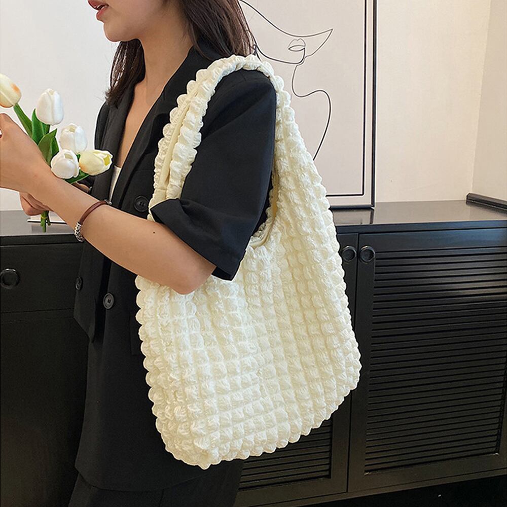 ポコポコっとした生地感が華やかな印象、持つだけでこなれ感のある韓国Designポップコーントートバッグ