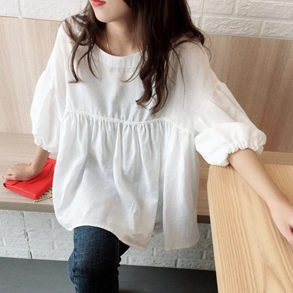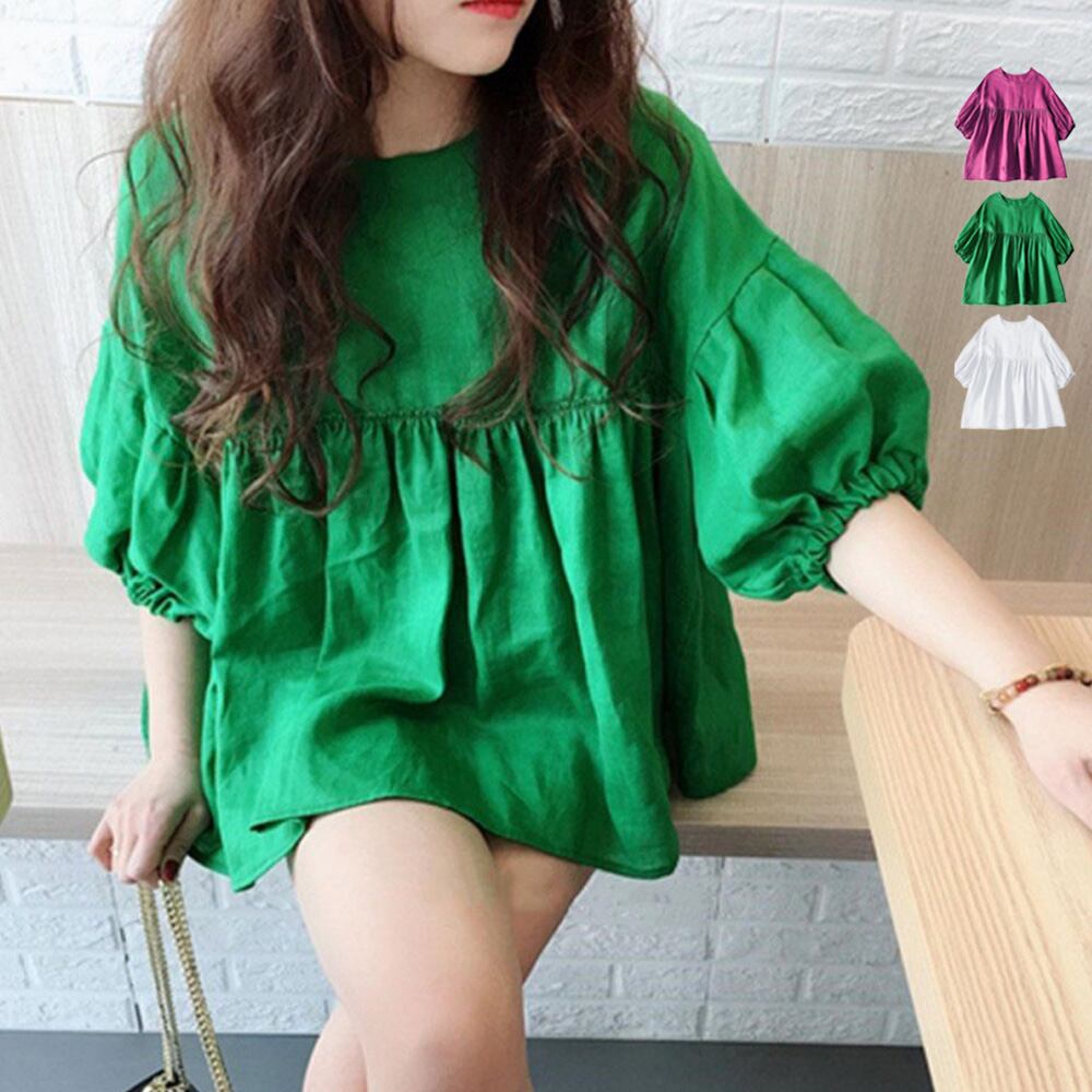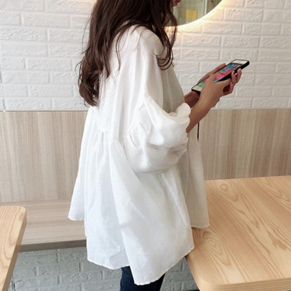 バルーンスリーブブラウス オフィスカジュアルトップス 七分袖 白 通勤 大人上品プルオーバー 韓国風 20代30代40代