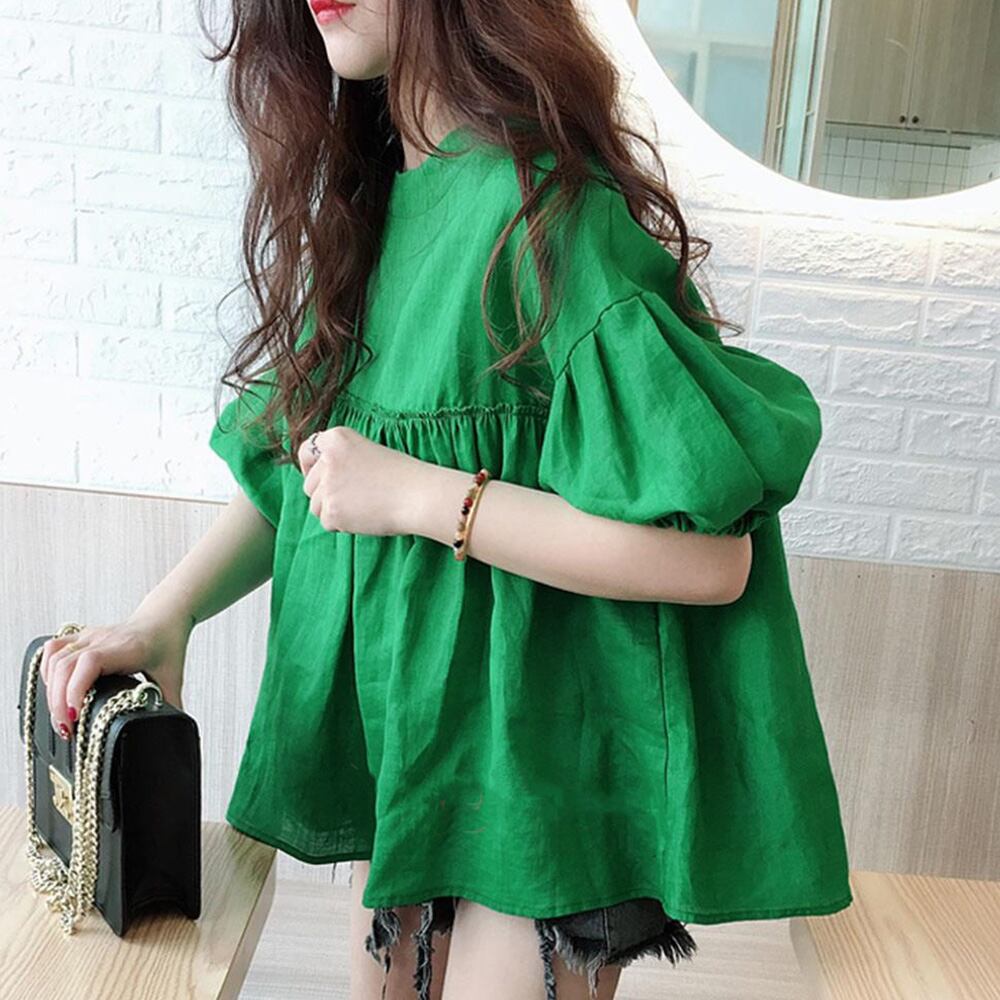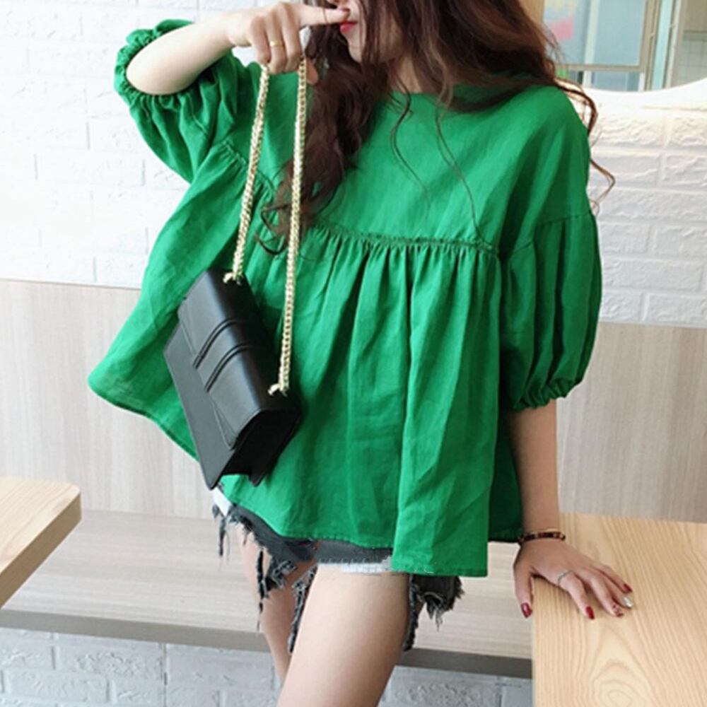 ギャザーブラウス夏 Aライン体型カバー ボリューム袖着やせ