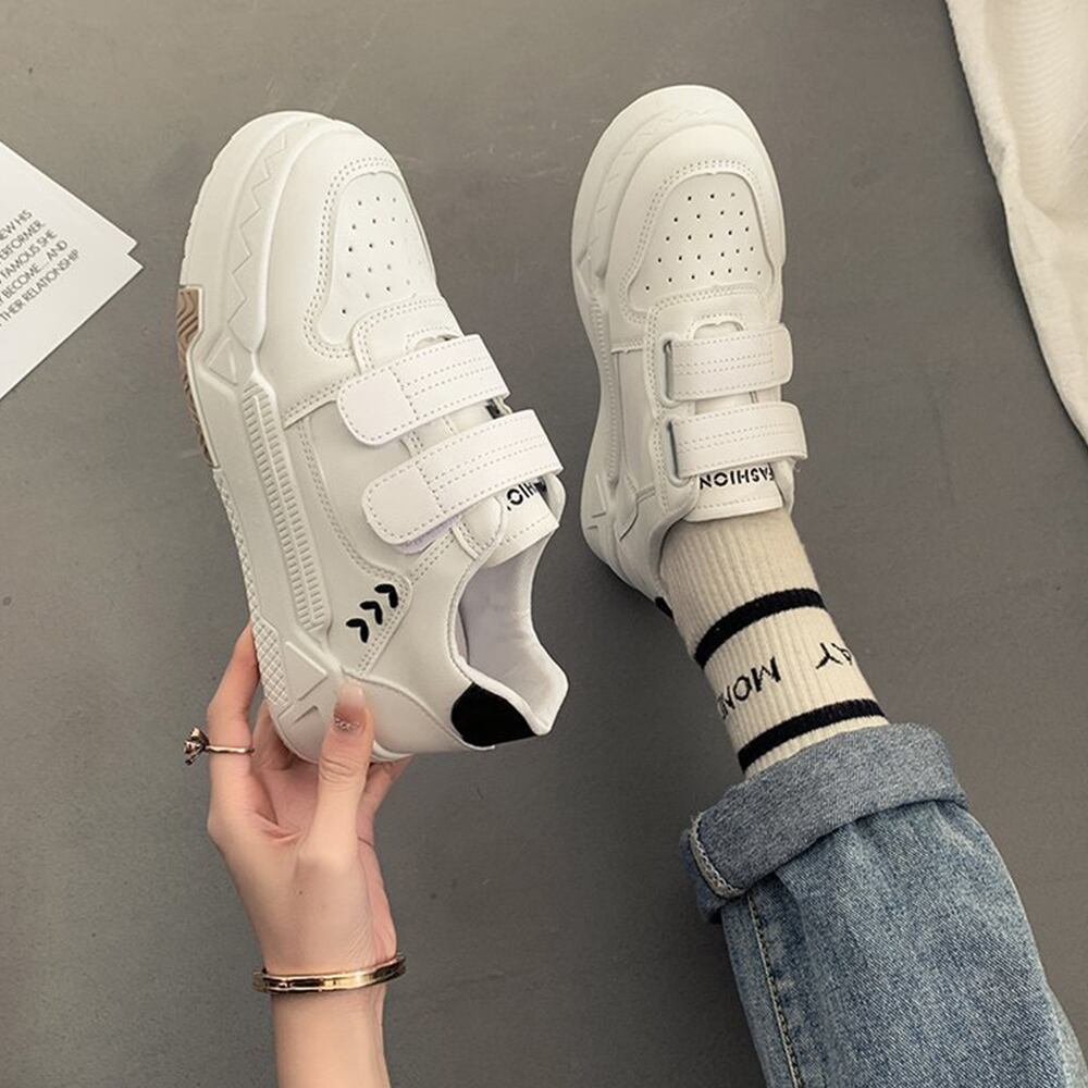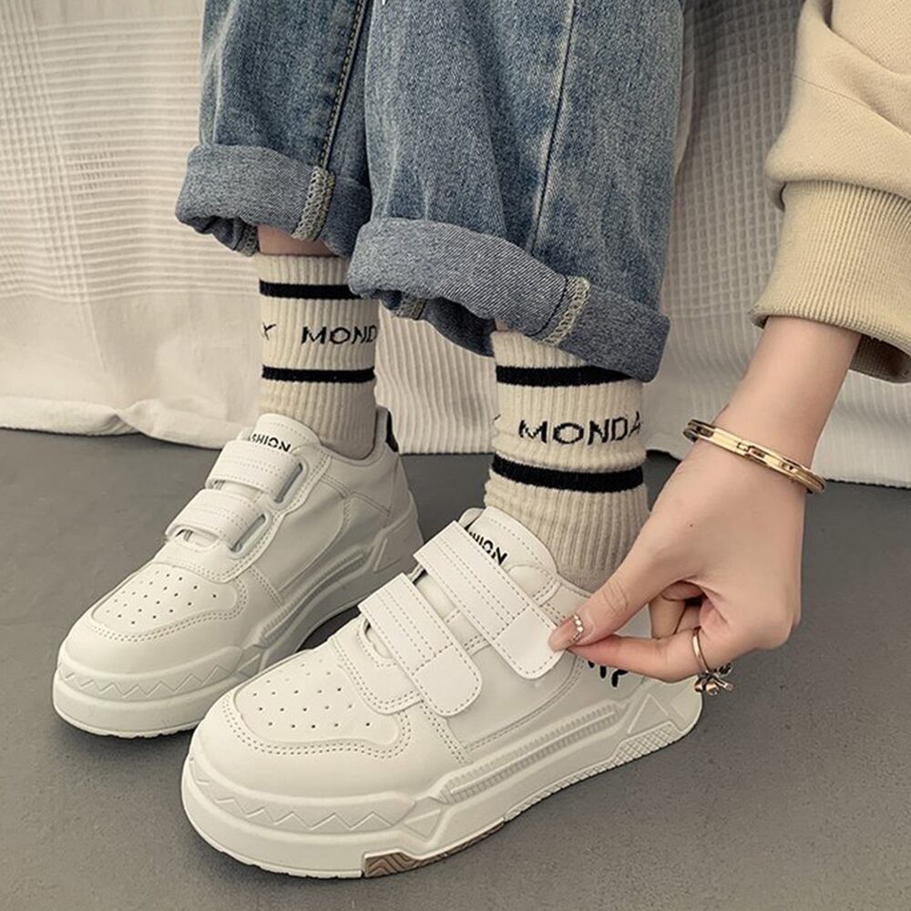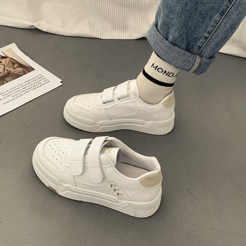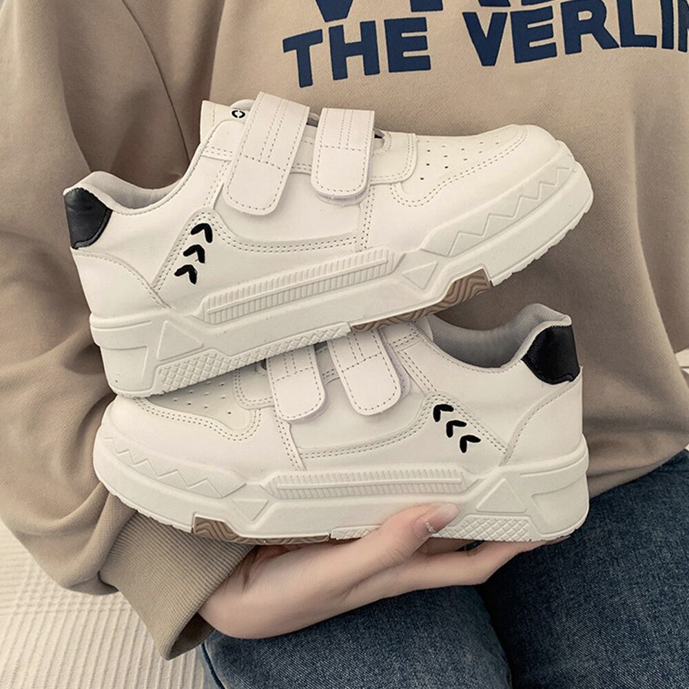 ローカット スニーカー マジックテープ 履きやすい カジュアル シューズ PUレザ ローヒール 靴 通勤通学 歩きやすい