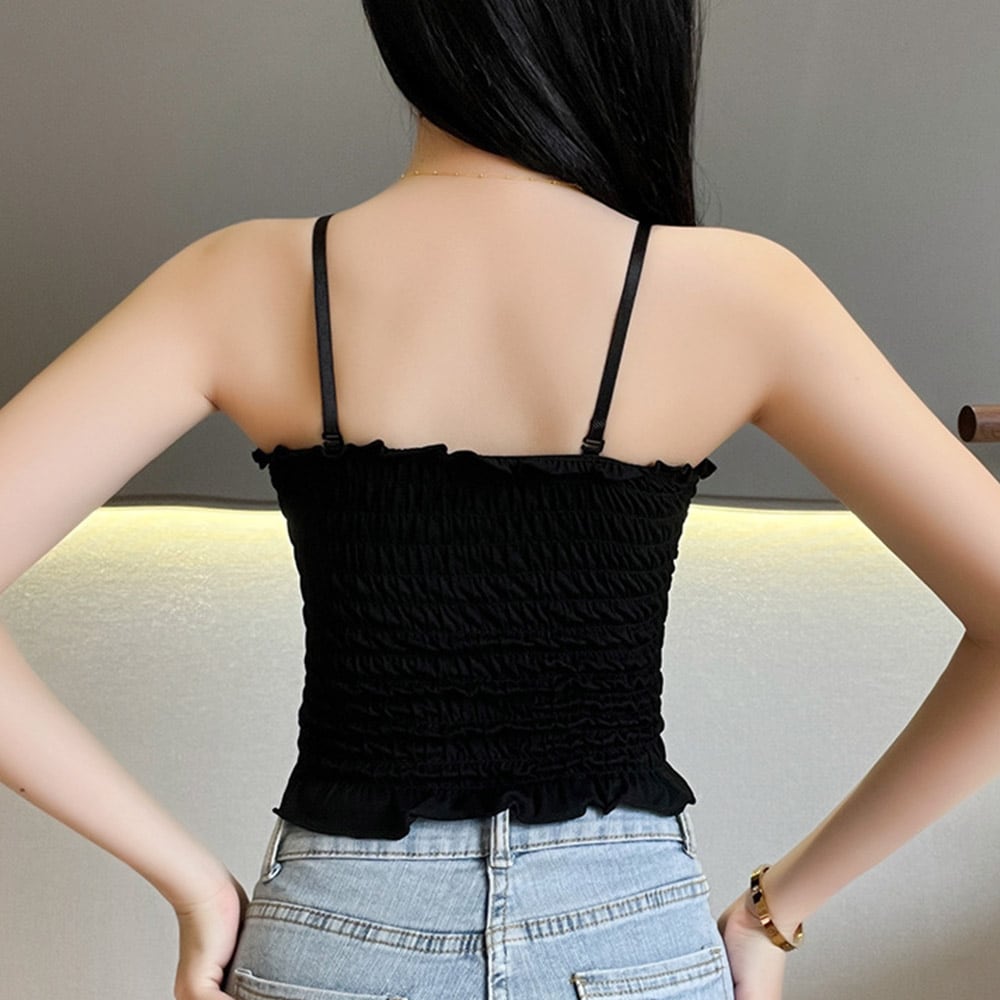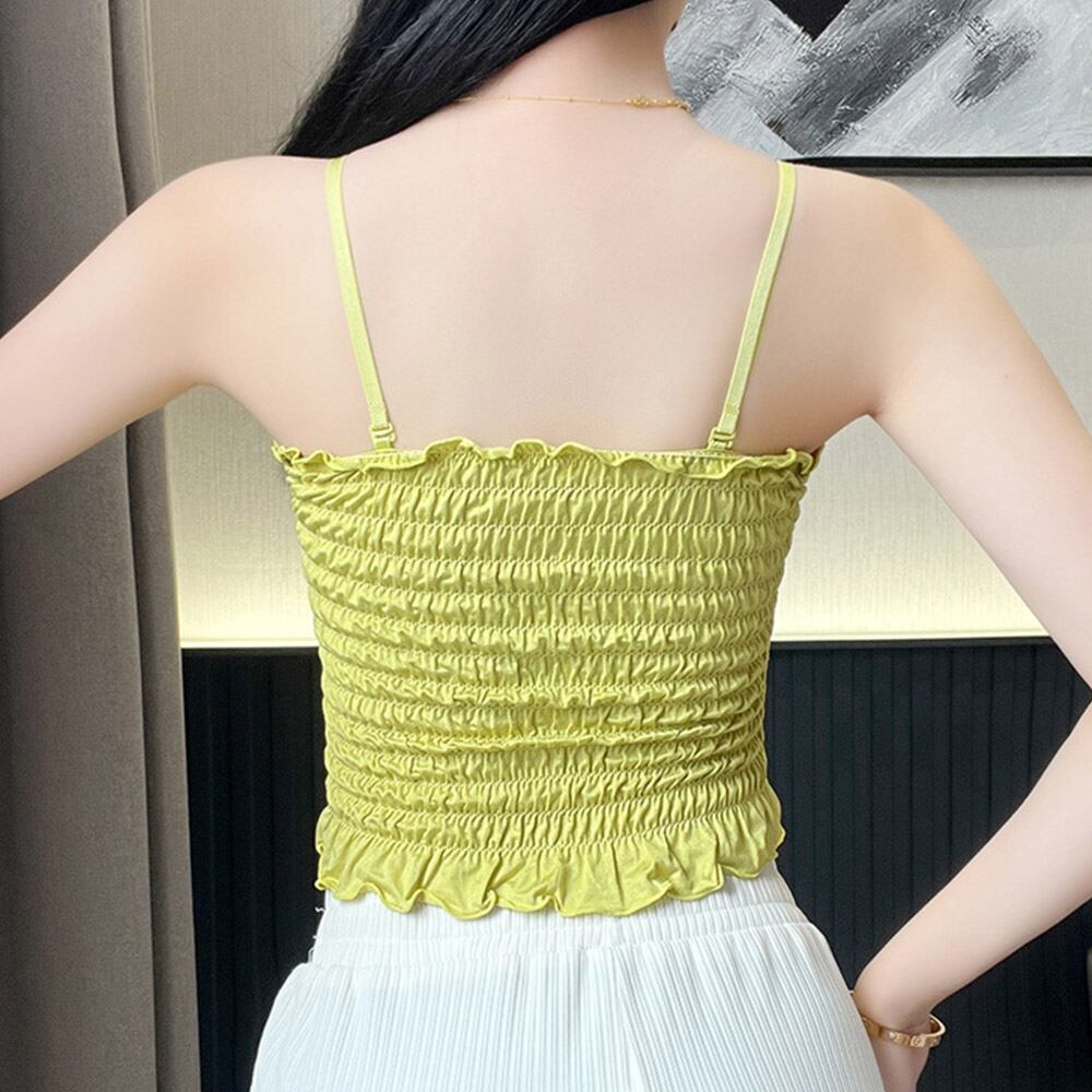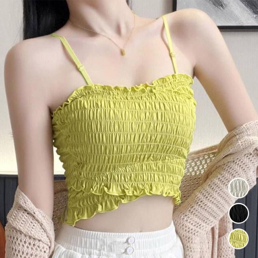 立体感のある細かなシャーリングがアクセントになったカップ付きインナーキャミ。