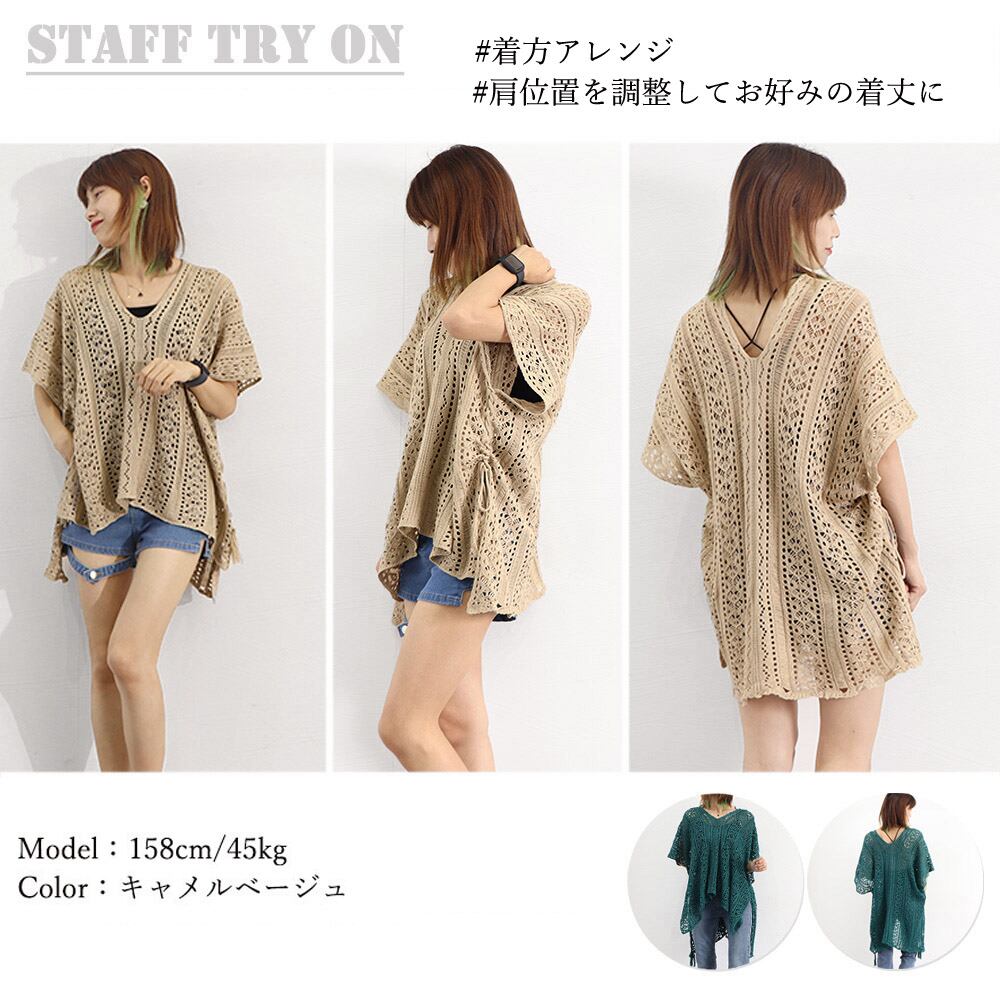 セクシー 体型カバー ニットトップス夏 レディース ゆったり Vネック 透け感ゆるニットプルオーバー クロシェ編み 韓国