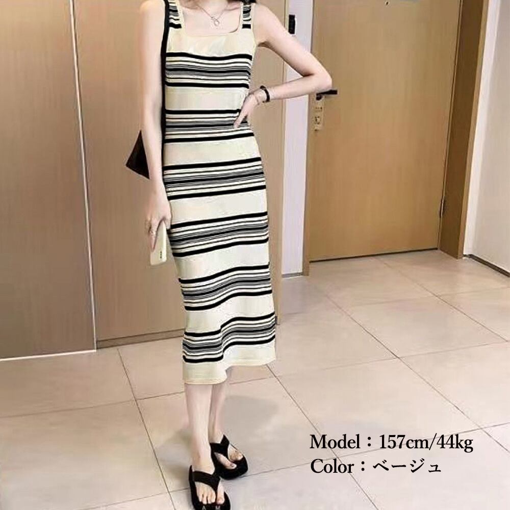 ニットワンピース ボーダー柄タンクワンピ