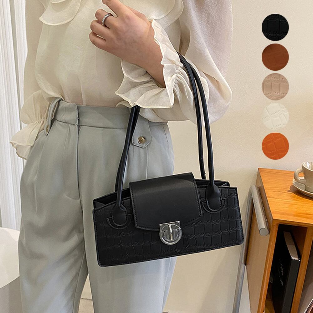 クロコダイル模様の型押しが施されており、きれいめでオトナっぽい韓国DESIGNのエコレザーバッグ